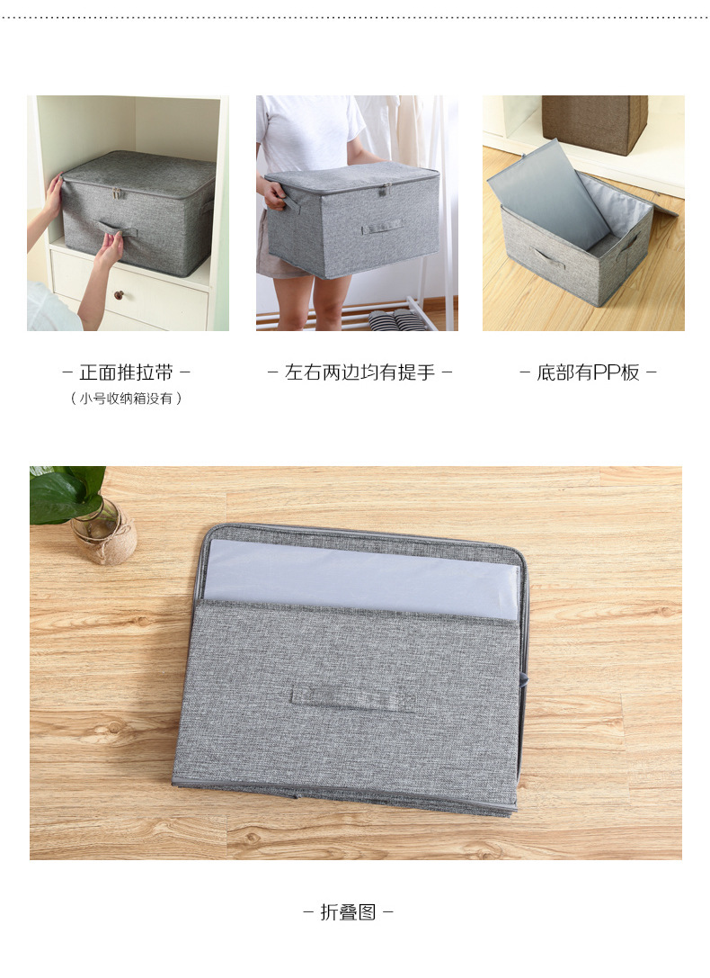 지퍼 상자 접이식 옷 보관 상자 직물 뚜껑 보관 상자 옷 배열 천 상자 보관 상자