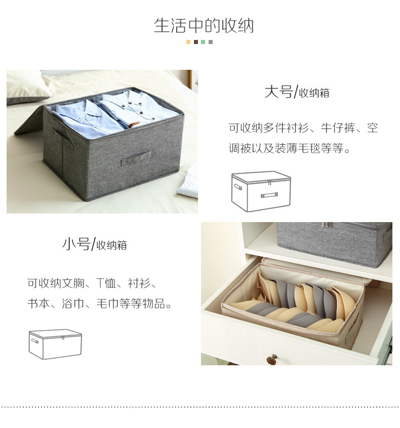 지퍼 상자 접이식 옷 보관 상자 직물 뚜껑 보관 상자 옷 배열 천 상자 보관 상자스토어 가기