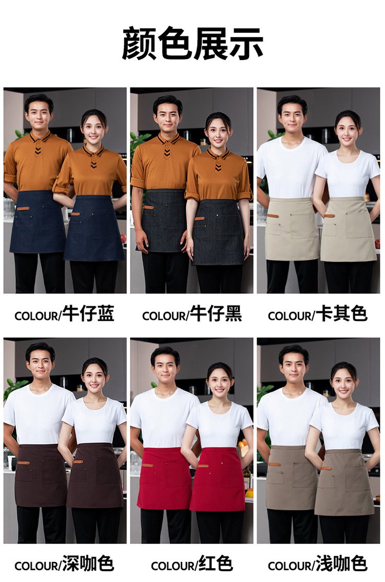 방수 반 앞치마 인쇄 상점 로고 인쇄 레스토랑 케이터링 특별 웨이터 반 작업복 여성 짧은 허리스토어 가기