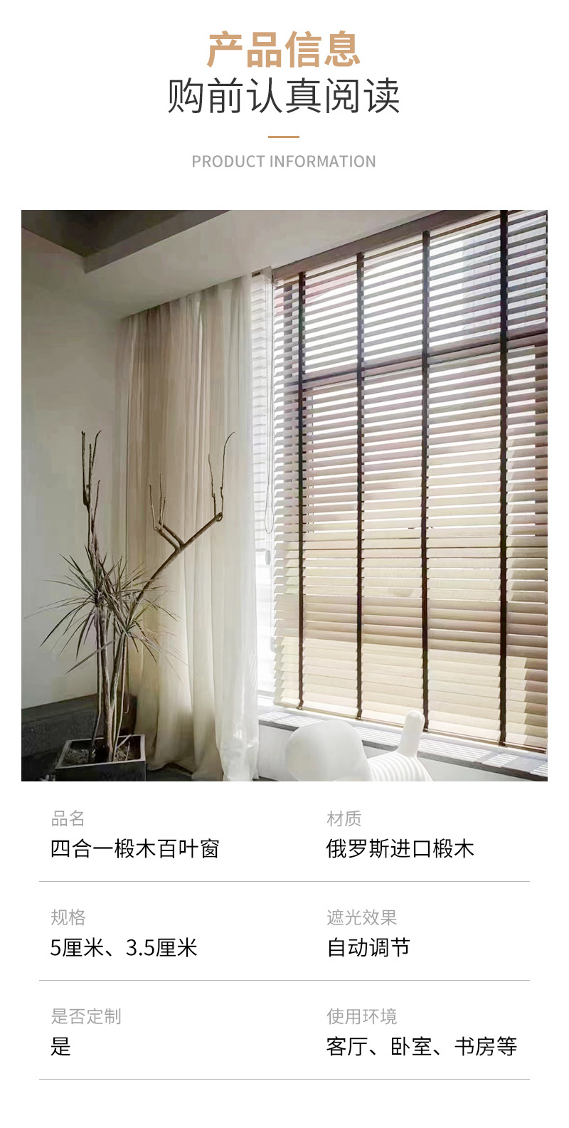 원목 블라인드 커튼 거실 화장실 주방 욕실 방수 가정용 차광 리프팅 심플 4-in-1스토어 가기