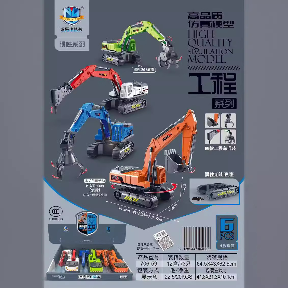 캡틴 나일 706-59 어린이 장난감 관성 엔지니어링 차량 4-컬러 혼합 시뮬레이션 엔지니어링 차량 모델