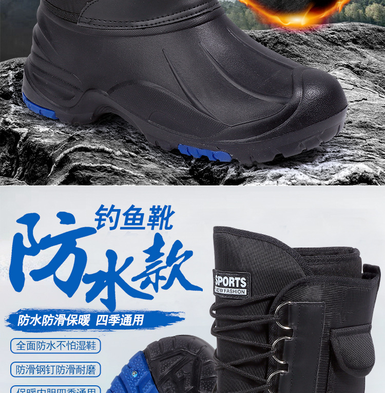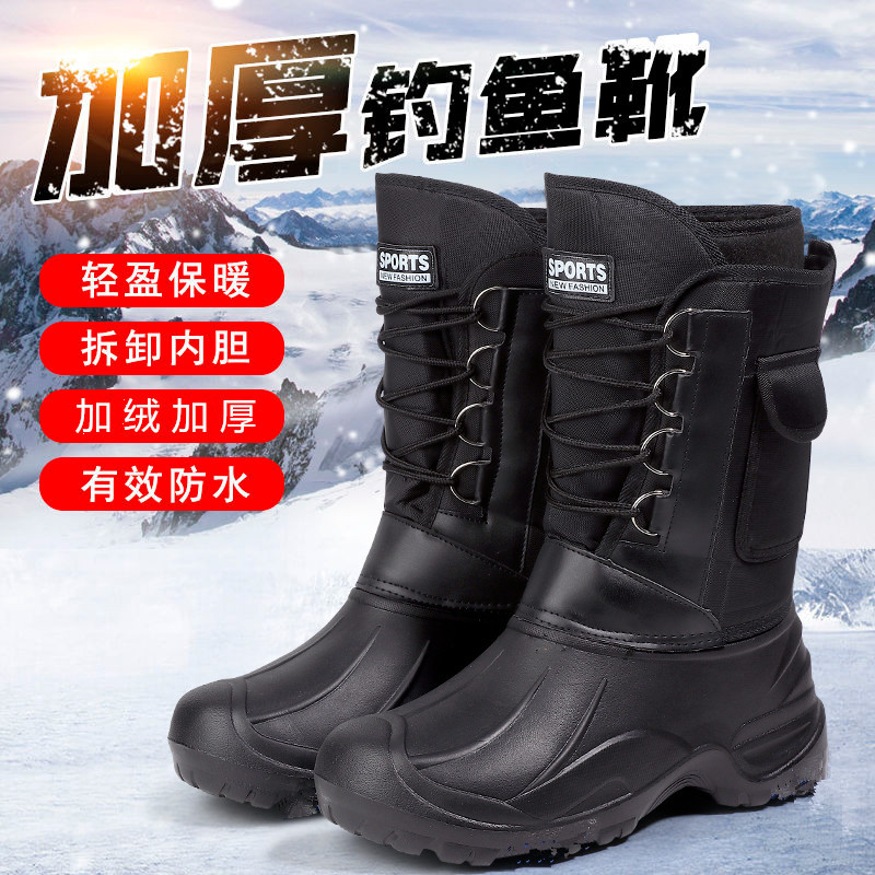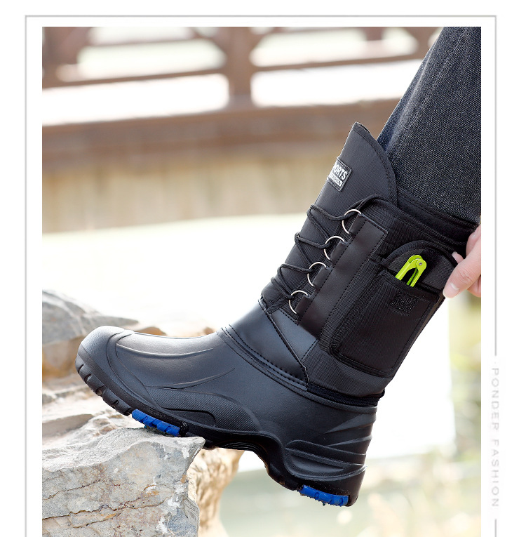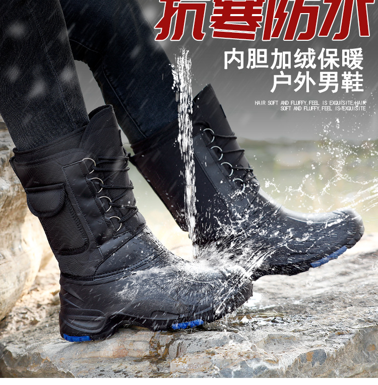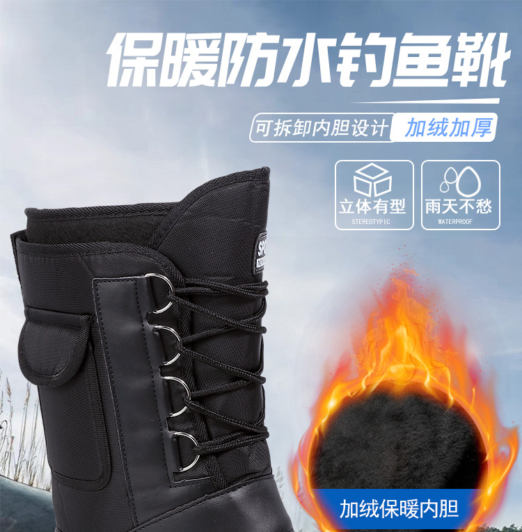 겨울 두꺼운 스노우 부츠 남성용 낚시 신발 방수 장화 비 슬립 따뜻한 코튼 신발 하이 탑 샌디 낚시 방탄 보호 부츠