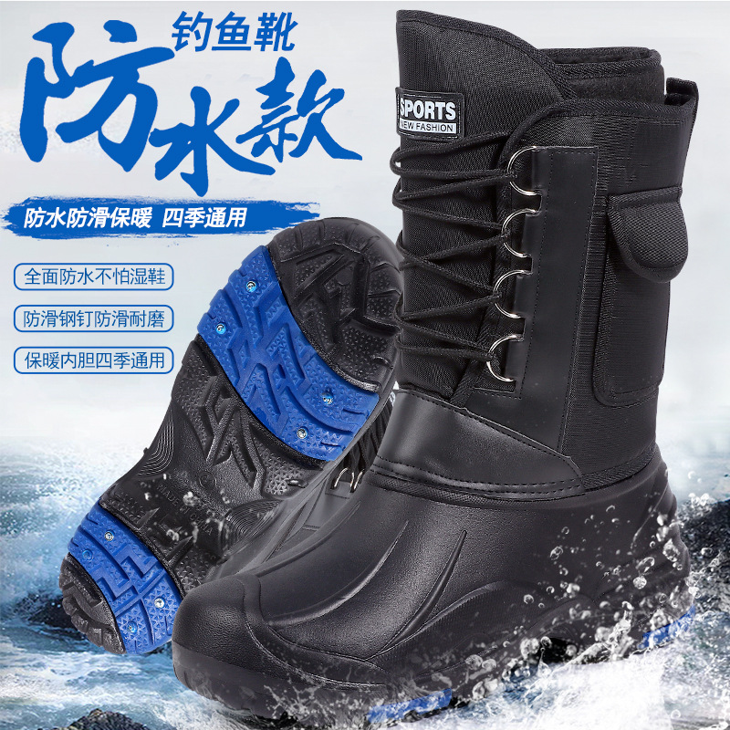 겨울 두꺼운 스노우 부츠 남성용 낚시 신발 방수 장화 비 슬립 따뜻한 코튼 신발 하이 탑 샌디 낚시 방탄 보호 부츠스토어 가기