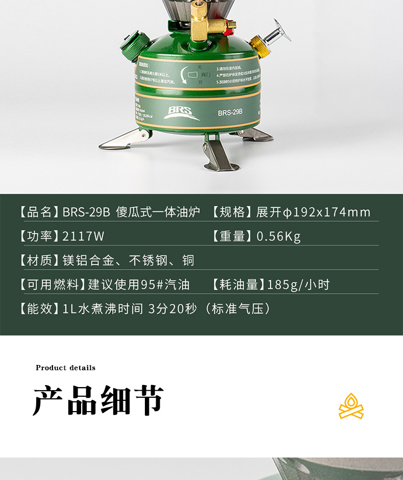 BRS-29B 통합 오일 스토브 예열 없음 다기능 가솔린 스토브 휴대용 피크닉 스토브 캠핑 미니 스토브