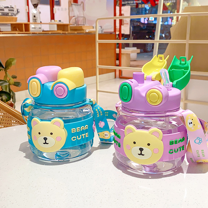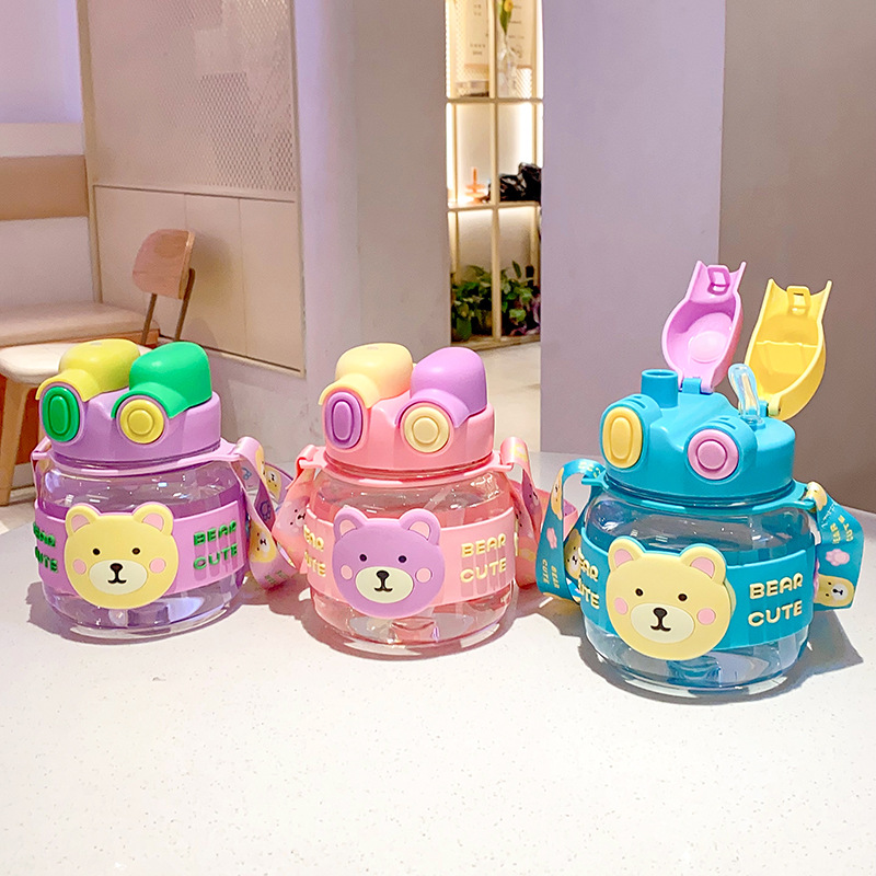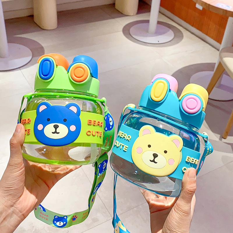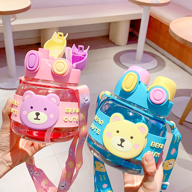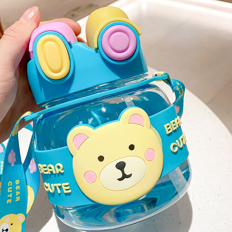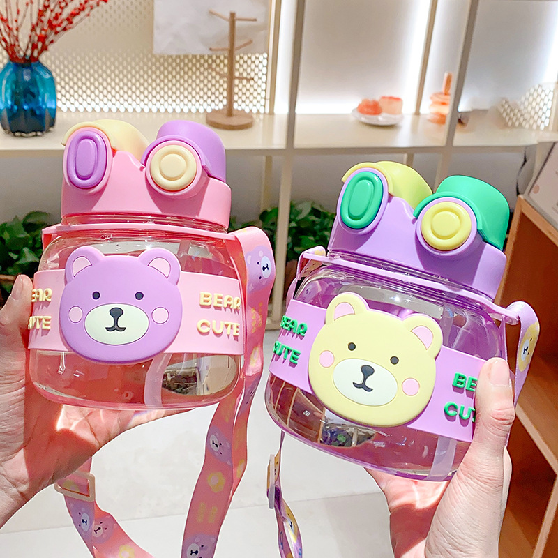 만화 어린이 남성과 여성 학생 플라스틱 컵 대용량 야외 휴대용 큰 배 컵 바운스 더블 음료 곰 플라스틱 컵
