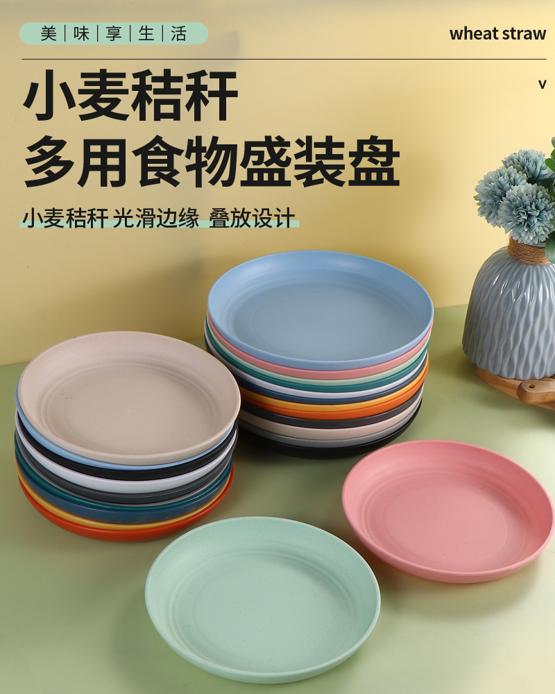 국경 간 밀 밀짚 20CM23CM 디스크 가정용 과일 플레이트 만두 플레이트 매점 플라스틱 플레이트 도매 선물스토어 가기
