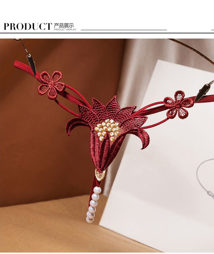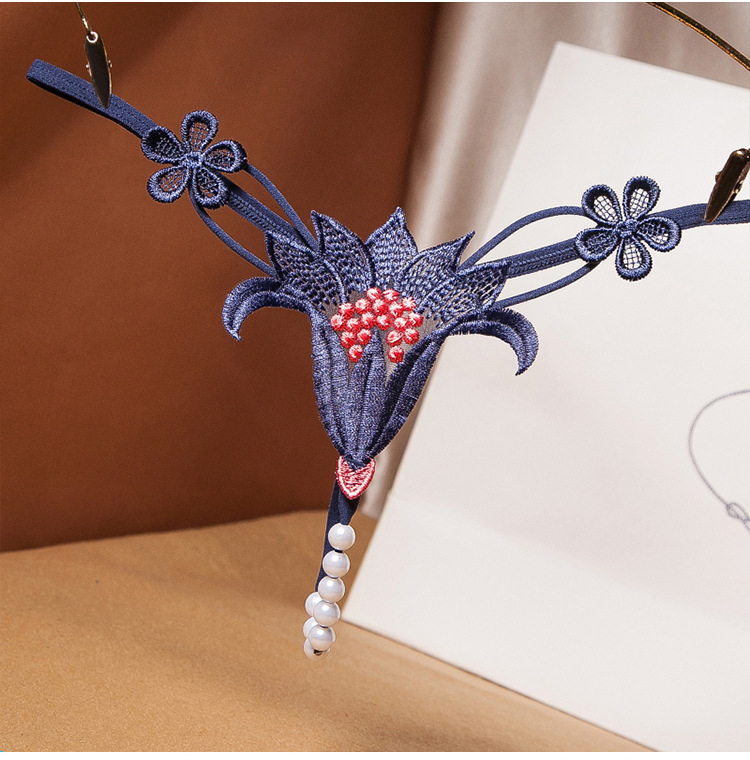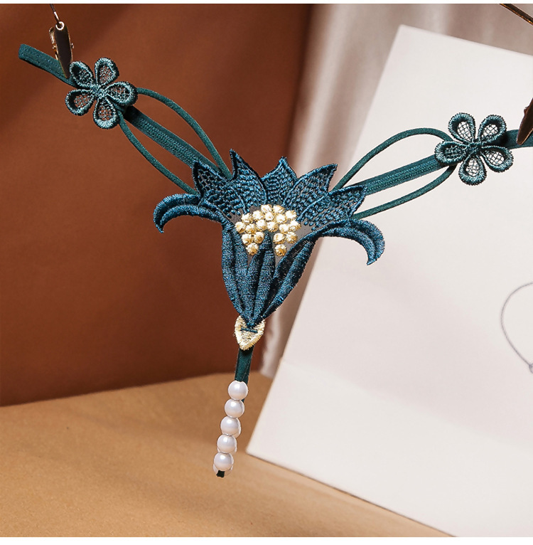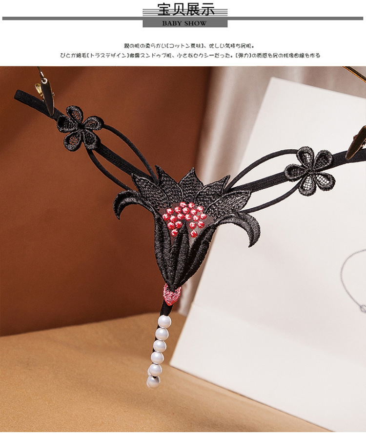 섹시한 섹시한 속옷 꽃 빈 진주 마사지 낮은 허리 탄력 유혹 G-string 8439스토어 가기