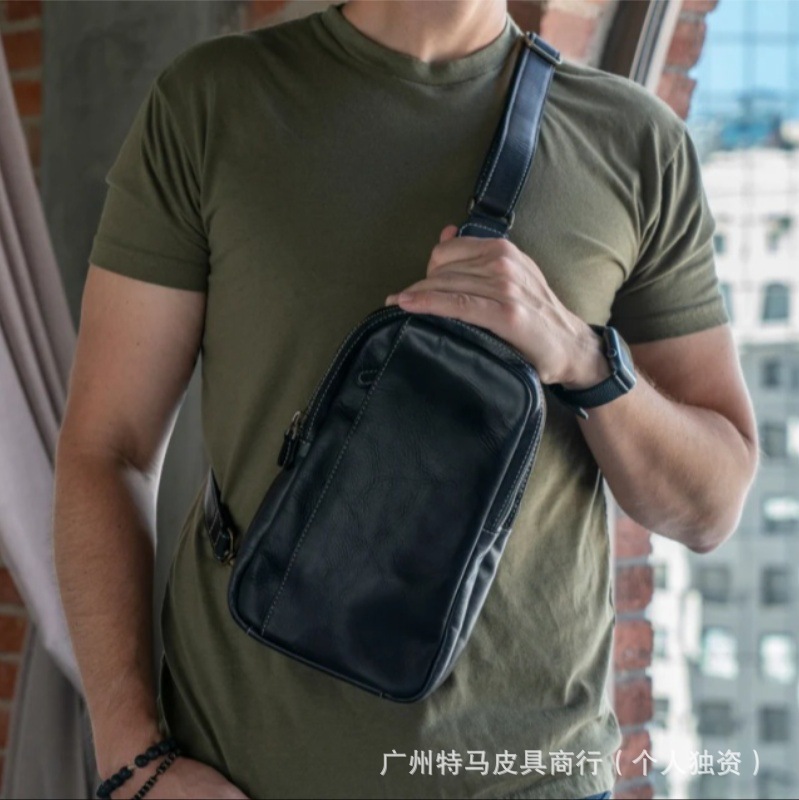 새로운 남성 복고풍 진짜 가죽 여행 크로스 바디 가슴 가방 대용량 야외 스포츠 휴대용 스포츠 허리 가방스토어 가기
