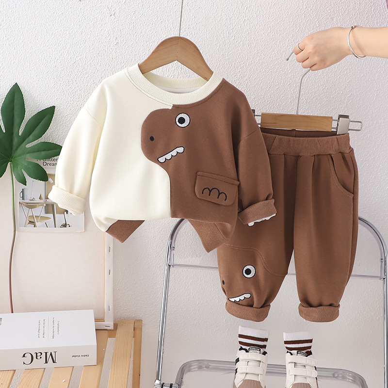 어린이 의류 2024 어린이 아기 새 소년의 봄과 가을 옷 세트 잘 생긴 컬러 매칭 공룡 스웨터 투피스 세트스토어 가기
