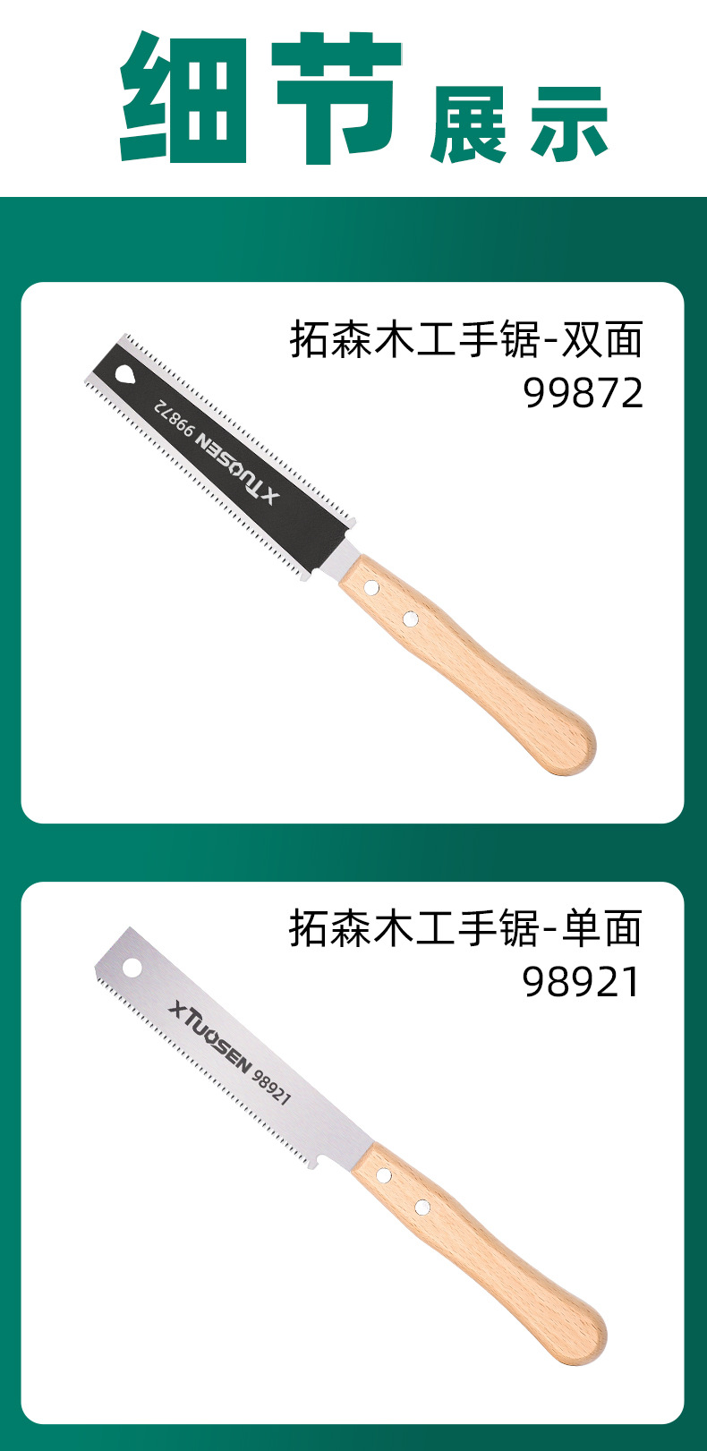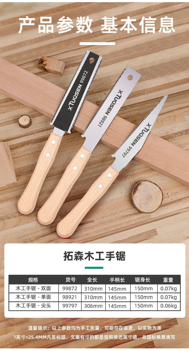 Tuosen 양면 톱 손 가정 작은 손으로 뽑은 뾰족한 목공 톱 빠른 미세 치아 수동 톱