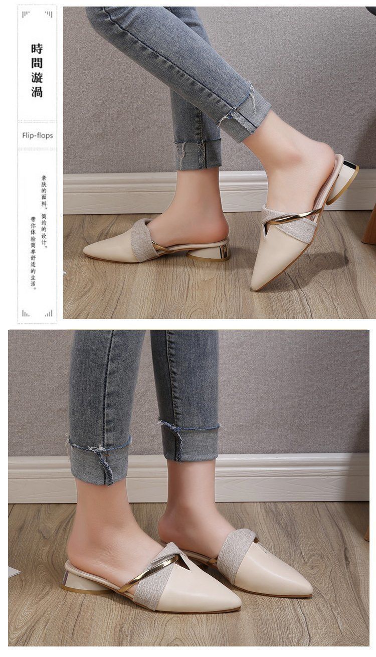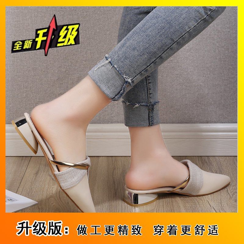 슬리퍼 여성용 아우터 착용 뮬러 신발 게으른 슬라이드 2024 여름 새로운 한국 스타일 두꺼운 힐 올 매치 바오터 하프 슬리퍼 패션스토어 가기