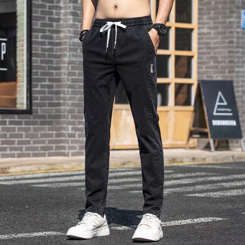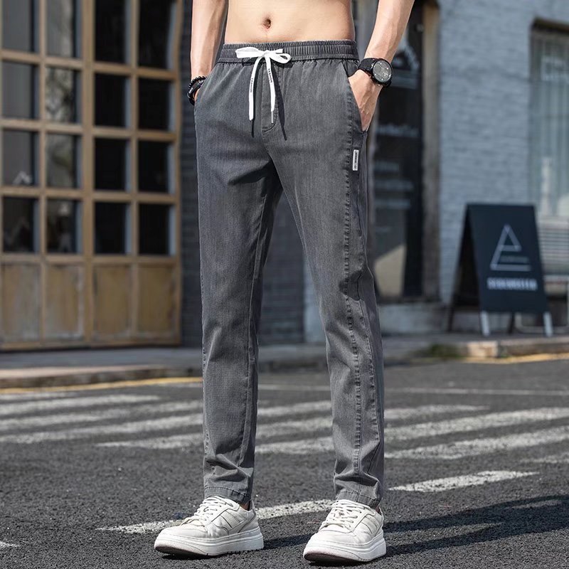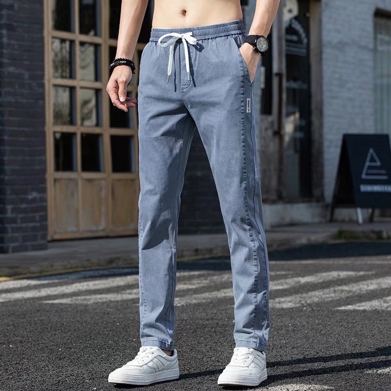 아이스 실크 청바지 남성 여름 얇은 2022 새로운 탄성 허리 스트레이트 튜브 느슨한 남성 패션 브랜드 캐주얼 긴 바지스토어 가기