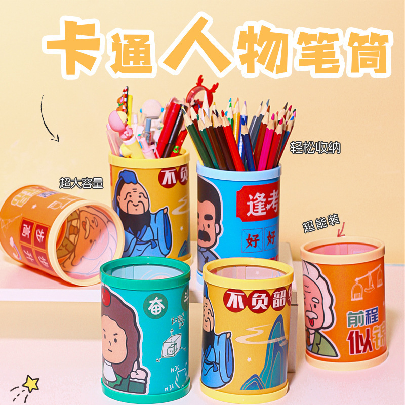 만화 영감 유명 인사 펜 홀더 학생 데스크탑 DIY 문구 보상 작은 선물 귀여운 새로운 청소년 접이식 펜 홀더스토어 가기