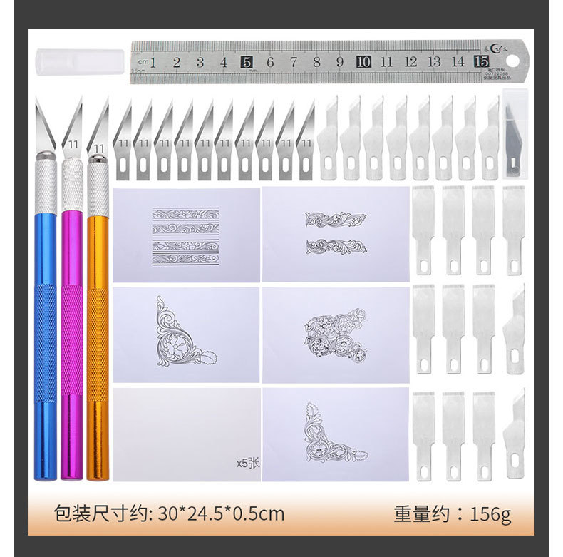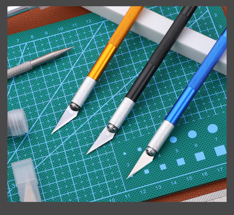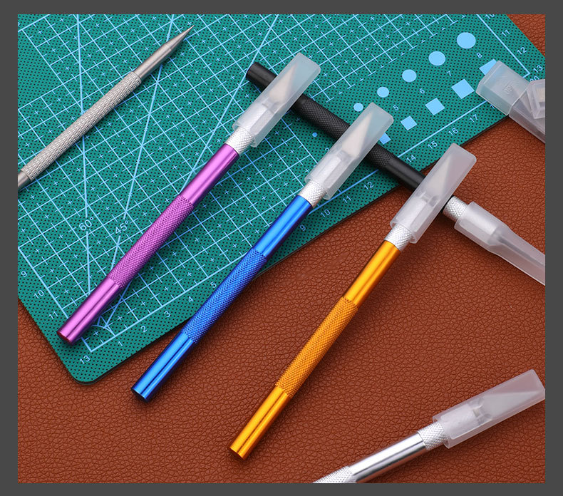 조각 나이프 멀티 사양 교체 가능한 블레이드 스캔 종이 가죽 조각 패턴 커팅 보드 조각 나이프 도구 가죽 세트