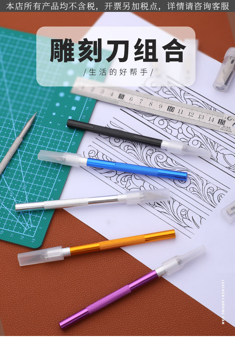 조각 나이프 멀티 사양 교체 가능한 블레이드 스캔 종이 가죽 조각 패턴 커팅 보드 조각 나이프 도구 가죽 세트스토어 가기