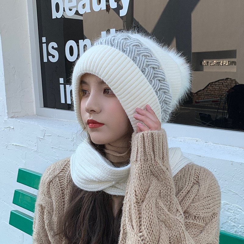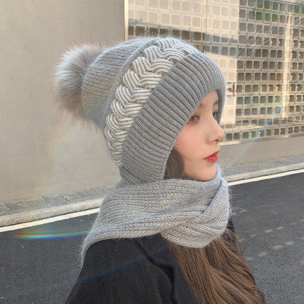 • 冬季韩版毛线帽子女士加绒加厚围脖妈妈骑车保暖防寒针织护耳潮帽