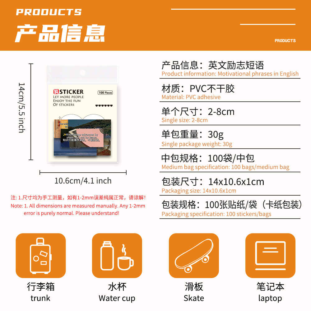 100 영어 영감 문구 텍스트 스티커 수하물 노트북 ipad 손 계정 DIY 장식 스티커 도매