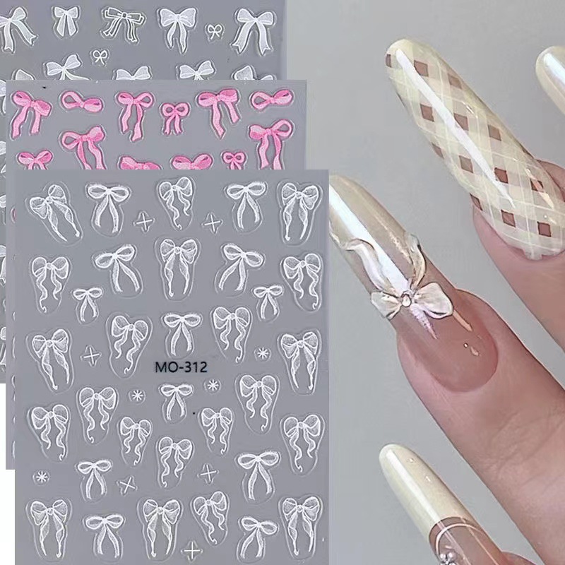 작은 빨간 책 네일 아트 스티커 Ins 인터넷 유명 인사 핫 스타일 리본 활 일본 스타일 간단한 3D 접착 네일 스티커 장식스토어 가기