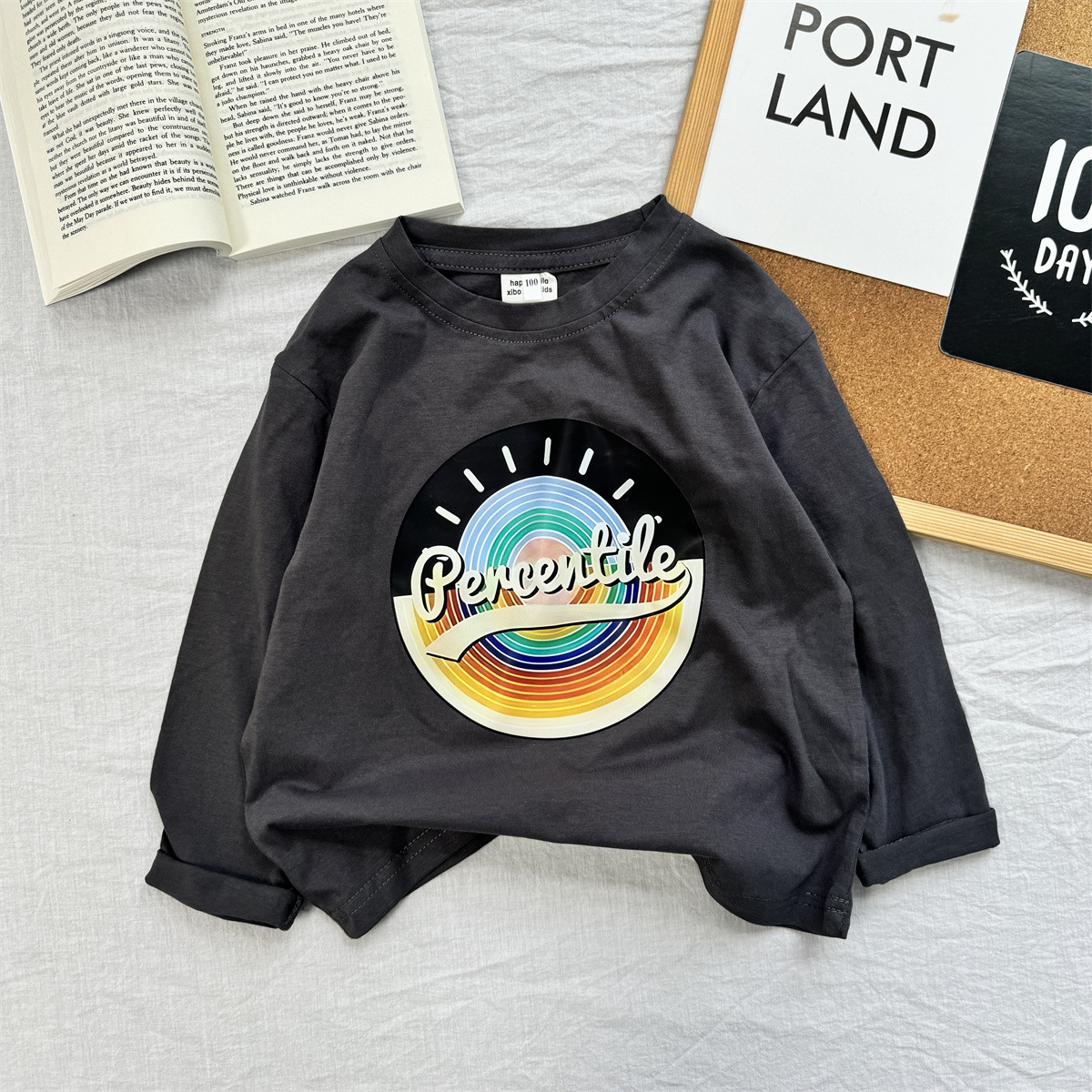 가을과 겨울 새 어린이 긴팔 티셔츠 남학생과 여학생베이스 셔츠 면 탑 중소형 어린이 둥근 목 티셔츠 크로스 보더 타이드스토어 가기