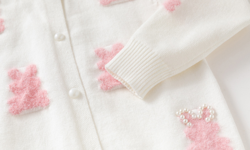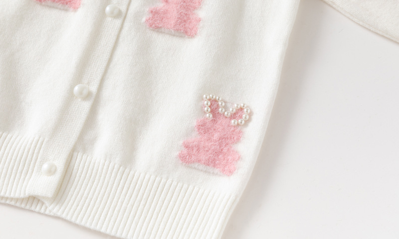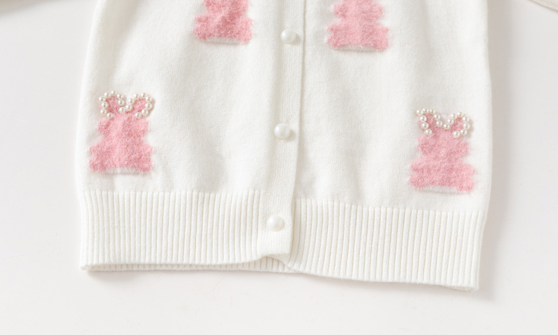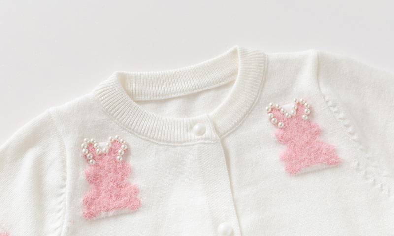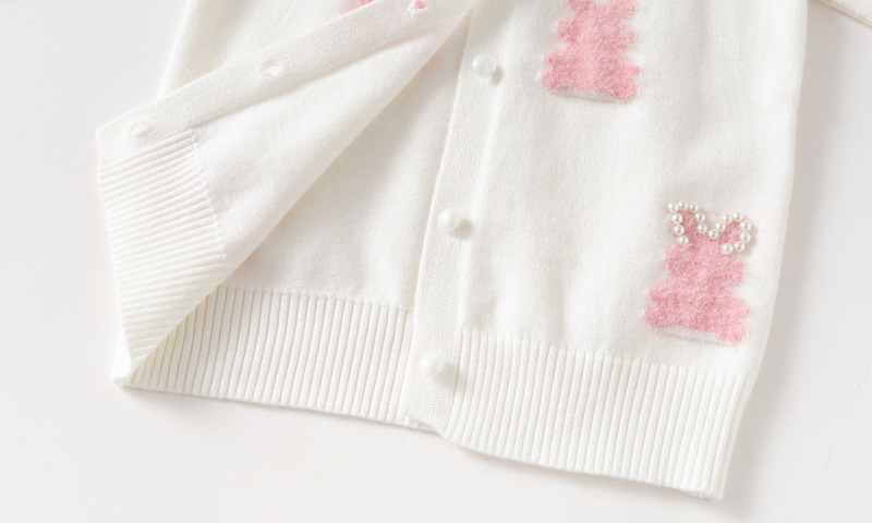 봄 새 아동복 소녀의 구슬 토끼 자카드 스웨터 카디건 한국식 소녀 싱글 레이어 스웨터 카디건스토어 가기