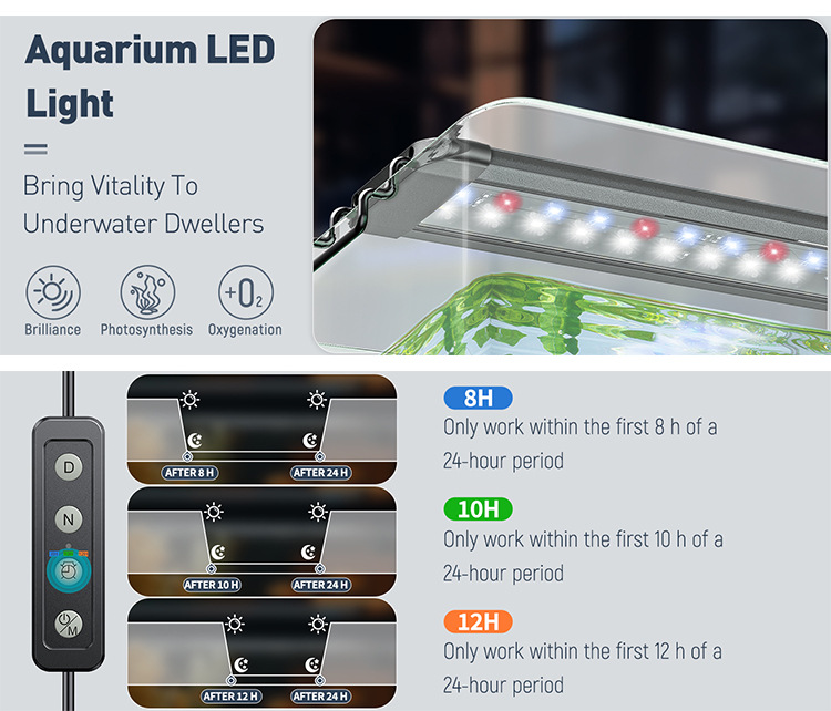 공장 직접 판매 물 잔디 램프 전체 스펙트럼 LED 수족관 램프 타이밍 물 잔디 램프 조정 전문 물고기 탱크 램프 도매