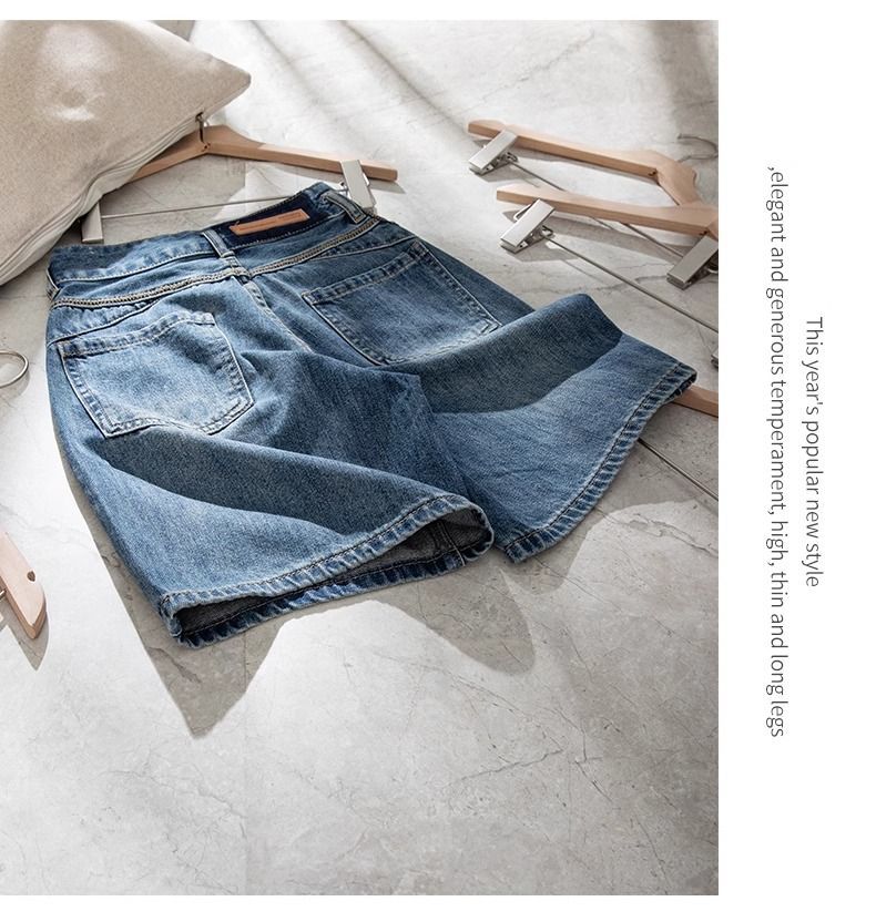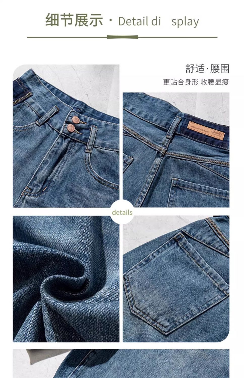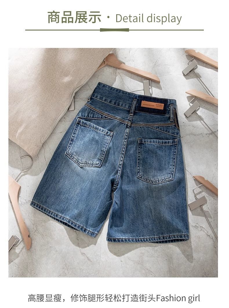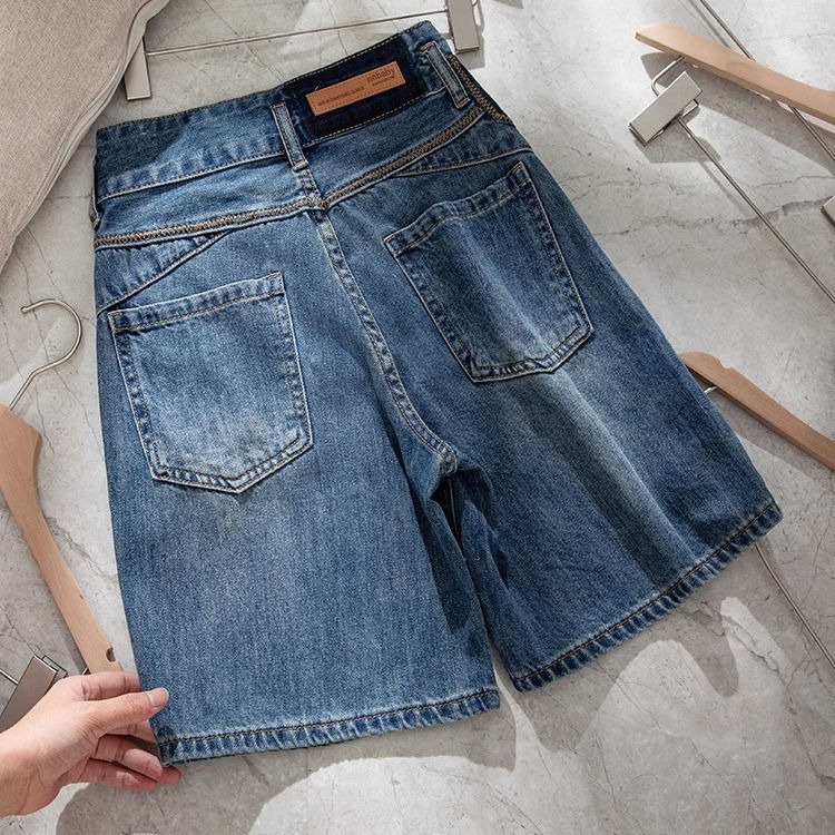 빈티지 콘트라스트 컬러 데님 반바지 여성 여름 2024 작은 새로운 높은 허리 슬리밍 느슨한 스트레이트 바지스토어 가기