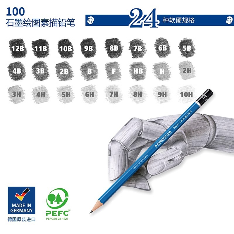 독일 Shide 빌딩 100 블루로드 스케치 연필 드로잉 탄소 펜 HB/2B/4B/6B/8B 아트 학생 그림스토어 가기