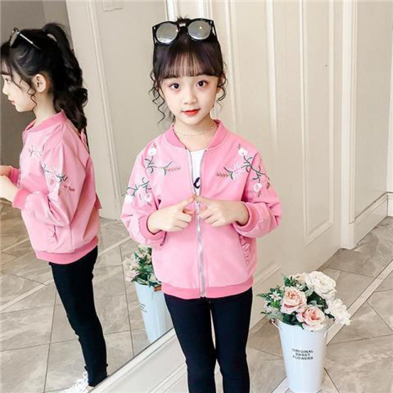 2024 년 소녀의 자수 코트 새 봄과 가을 얇은 4-13 세 어린이 한국 스타일 외국식 인터넷 인기 짧은 자켓