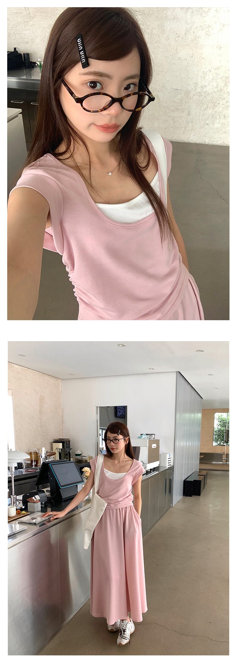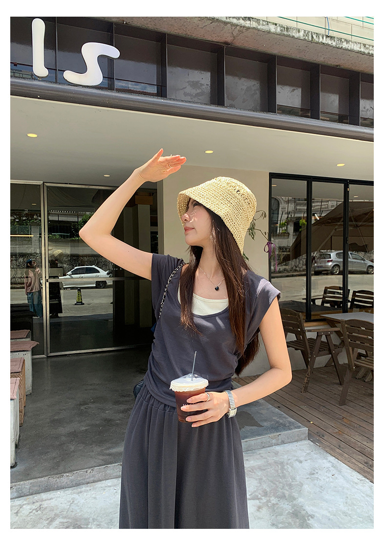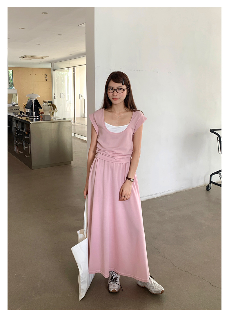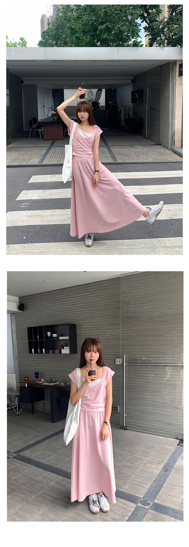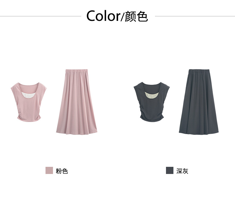 황정 한국 가짜 투피스 작은 셔츠 오버 스커트 세트 여성 2024 여름 캐주얼 슬리밍 오버 스커트 투피스 세트 142ZH472