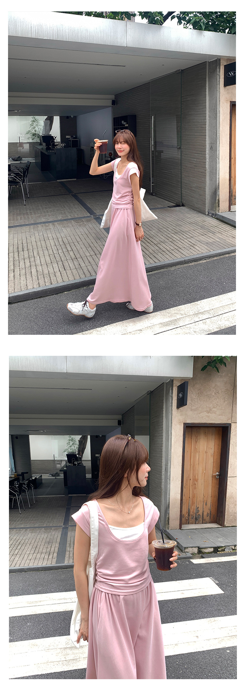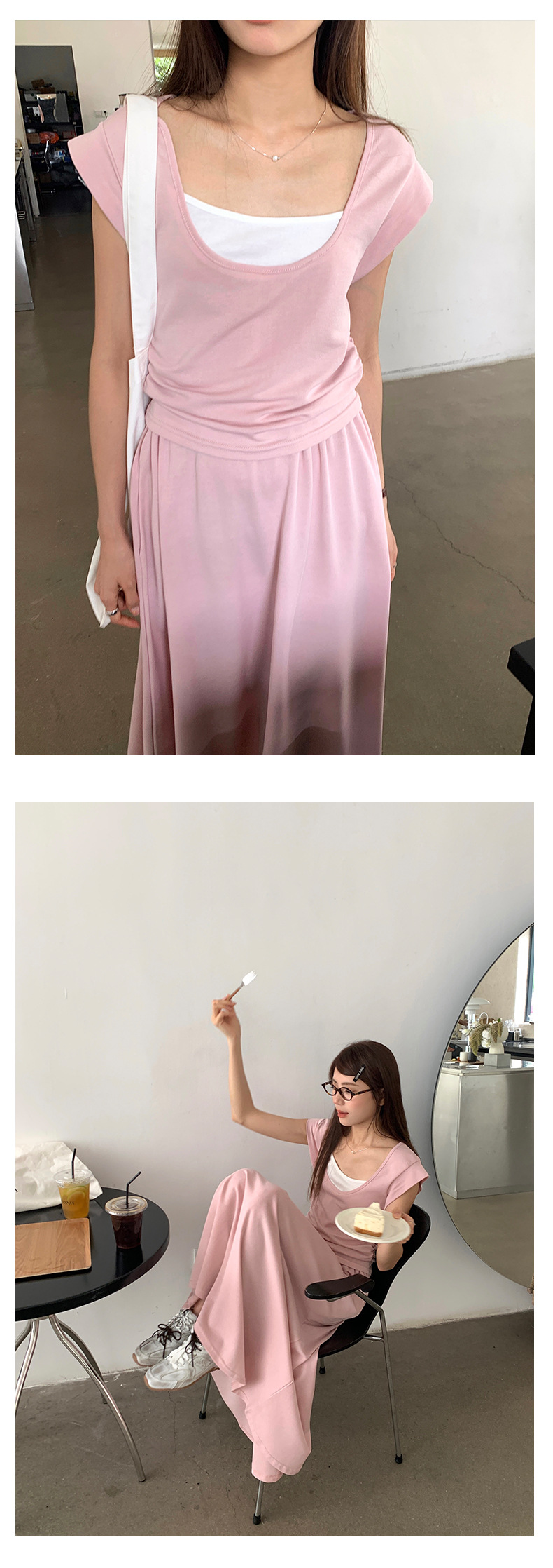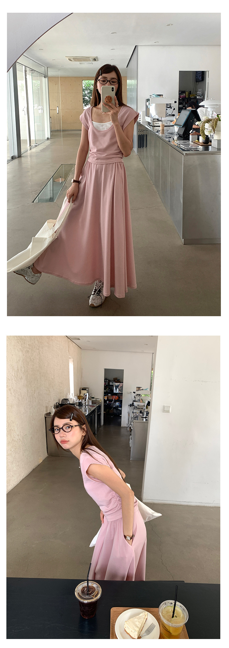 황정 한국 가짜 투피스 작은 셔츠 오버 스커트 세트 여성 2024 여름 캐주얼 슬리밍 오버 스커트 투피스 세트 142ZH472