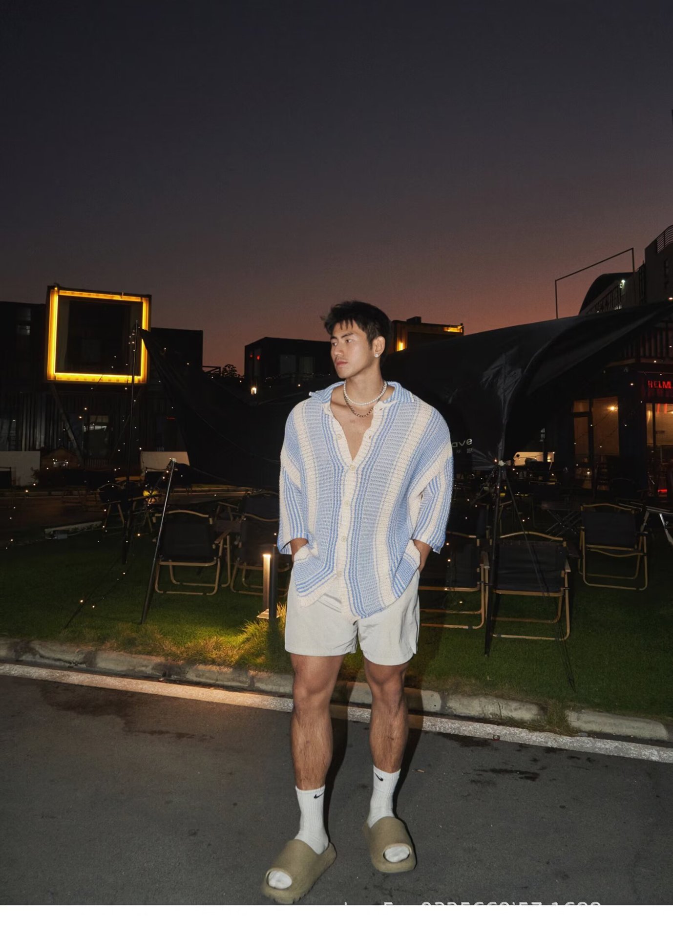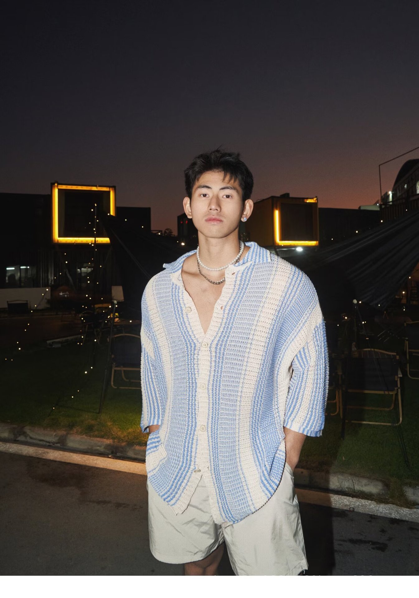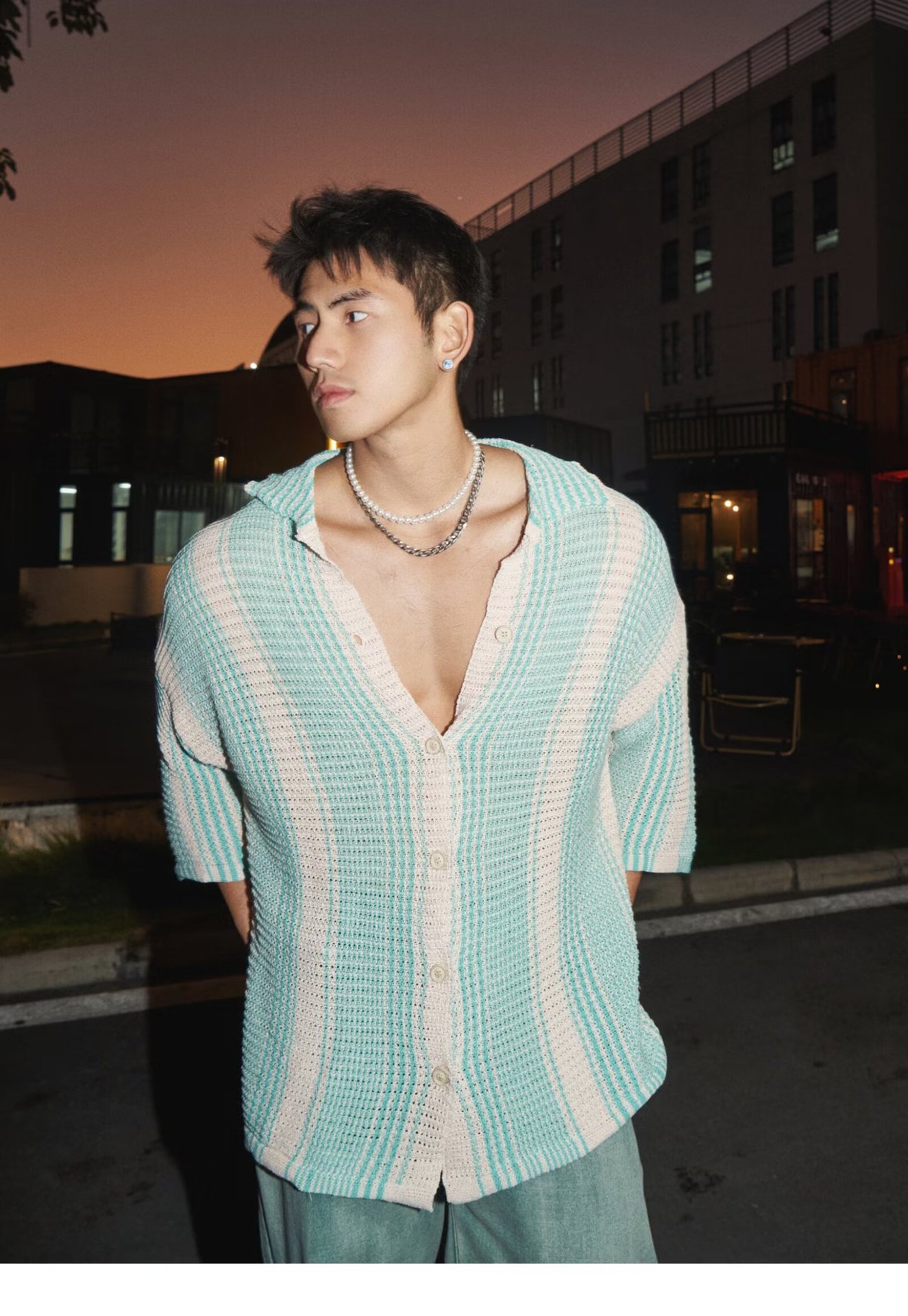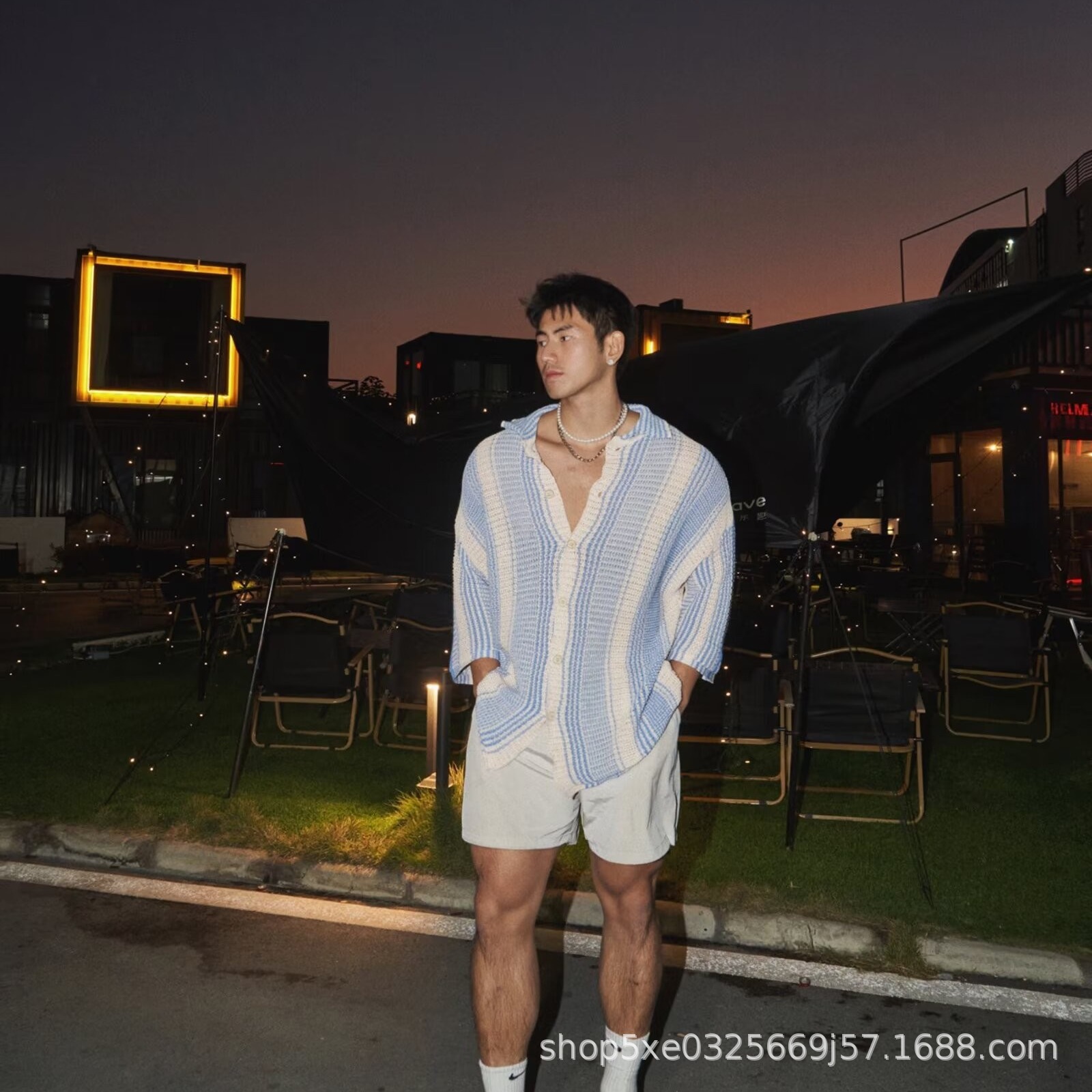 유럽과 미국의 중공 니트 카디건 남자 하이 엔드 센스 루즈 아이스 쿨 실크 셔츠 쿨 얇은 통기성 메쉬 스트라이프 스웨터 트렌디스토어 가기