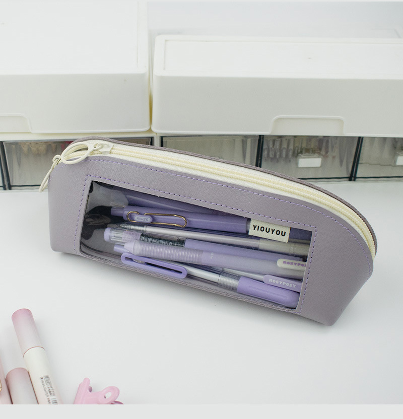 투명 창문이 있는 쉘 필통, 심플하고 대용량, 학생용 문구 가방, 멋진 디자인의 학생 시험용 문구 수납 가방