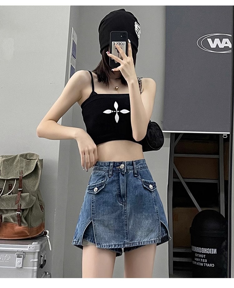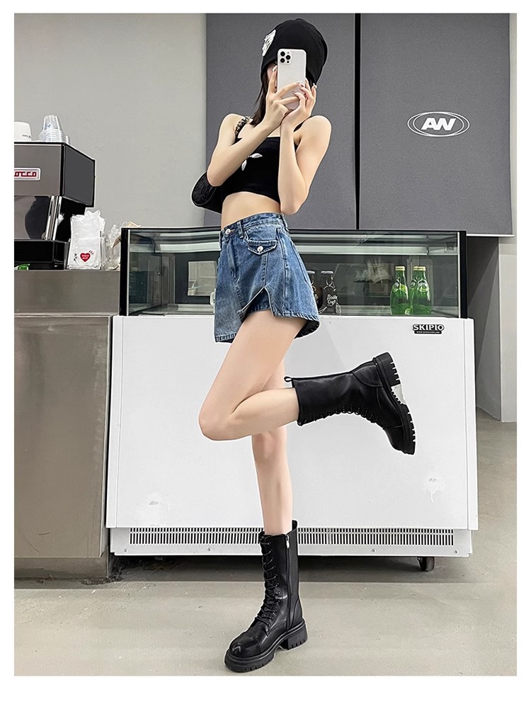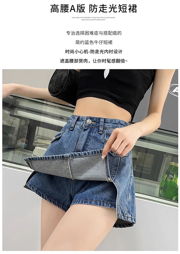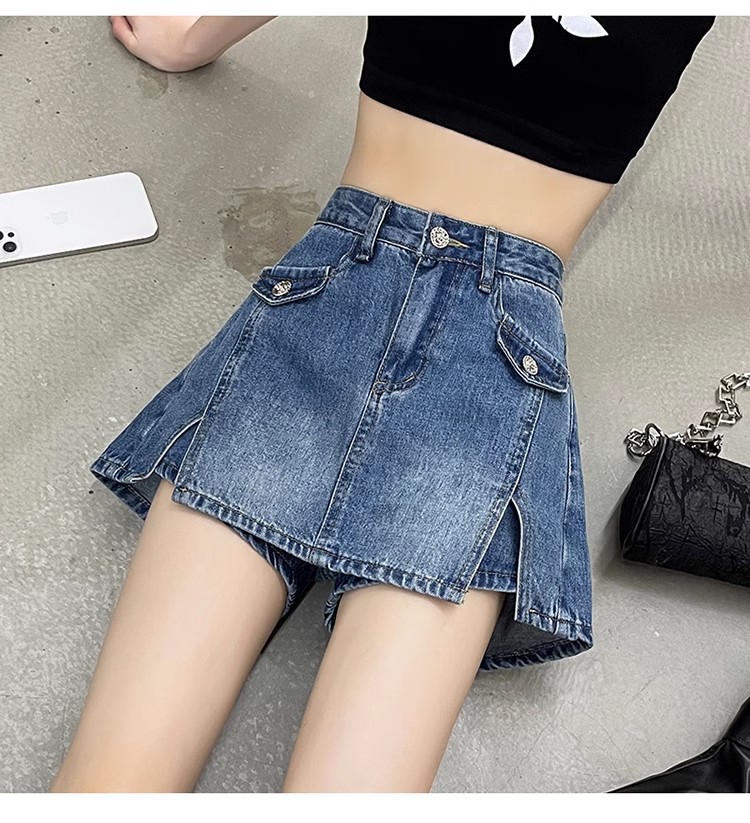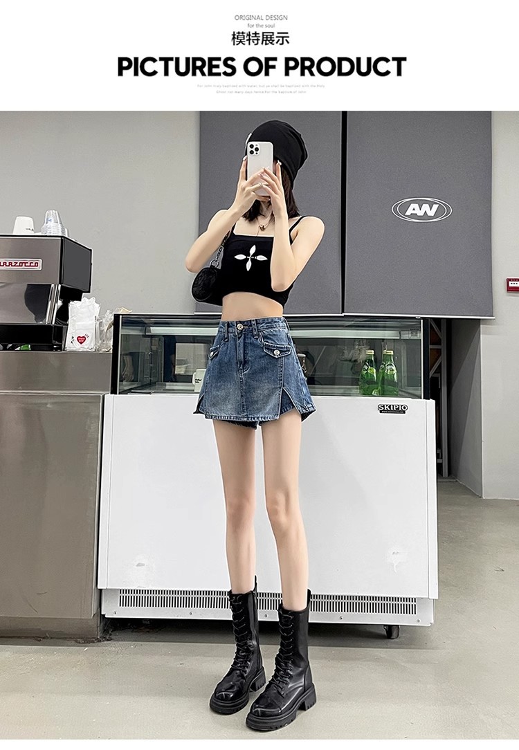높은 허리 데님 반바지 여성 바지 스커트 스파이스 걸스 2024 봄과 가을 새로운 복고풍 슬리밍 가짜 투피스 핫 트렌디 팬츠