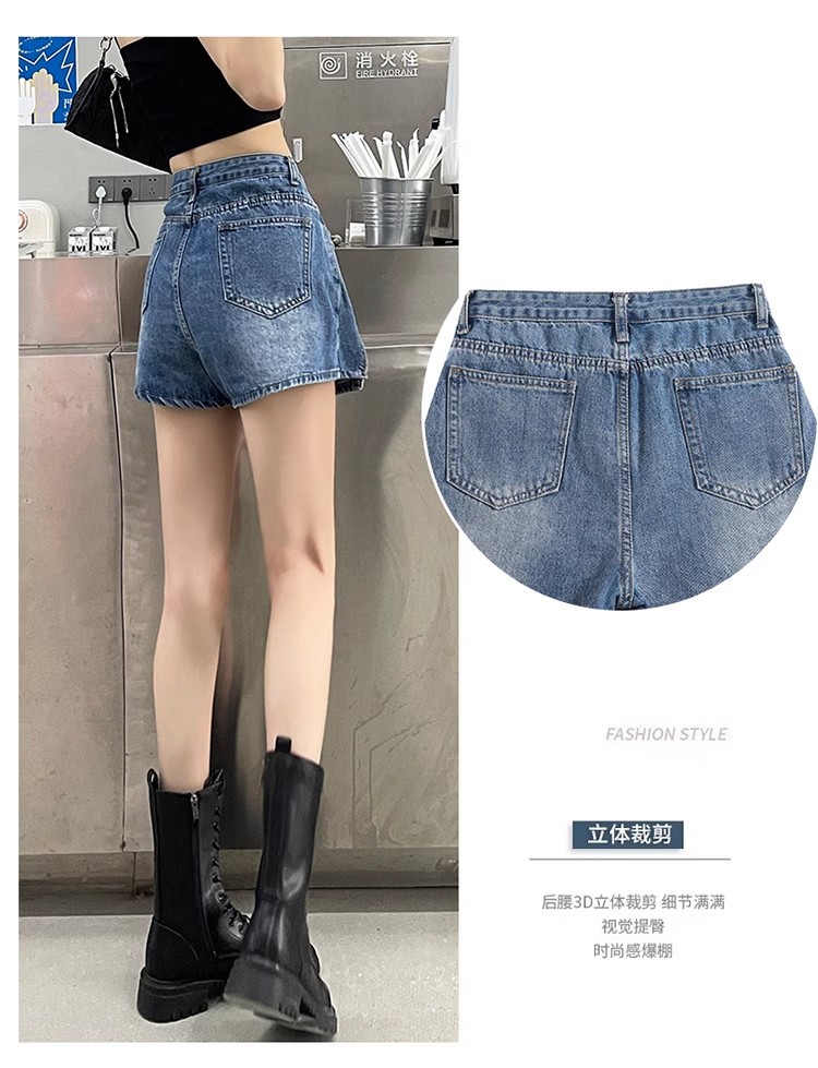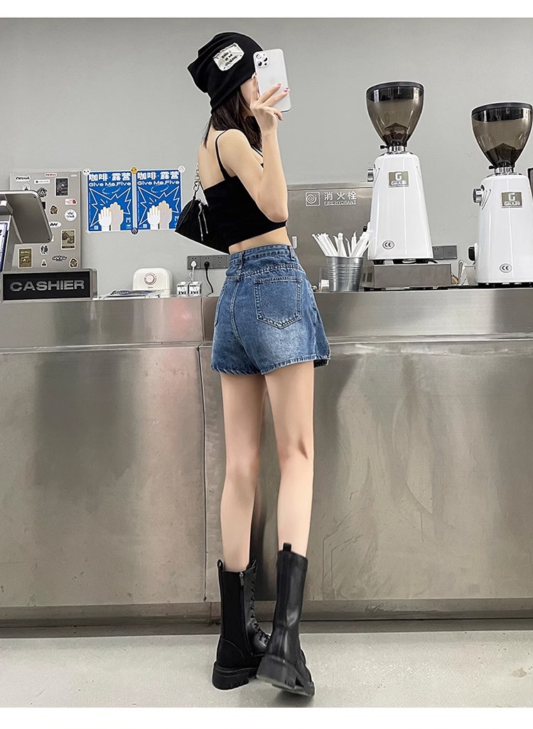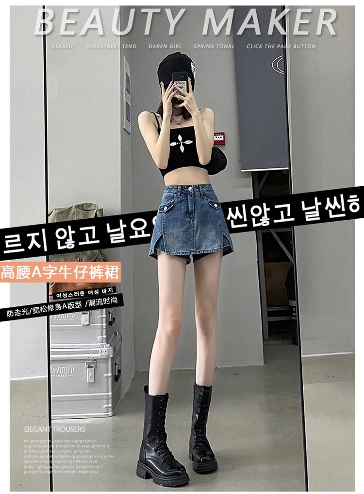 높은 허리 데님 반바지 여성 바지 스커트 스파이스 걸스 2024 봄과 가을 새로운 복고풍 슬리밍 가짜 투피스 핫 트렌디 팬츠스토어 가기