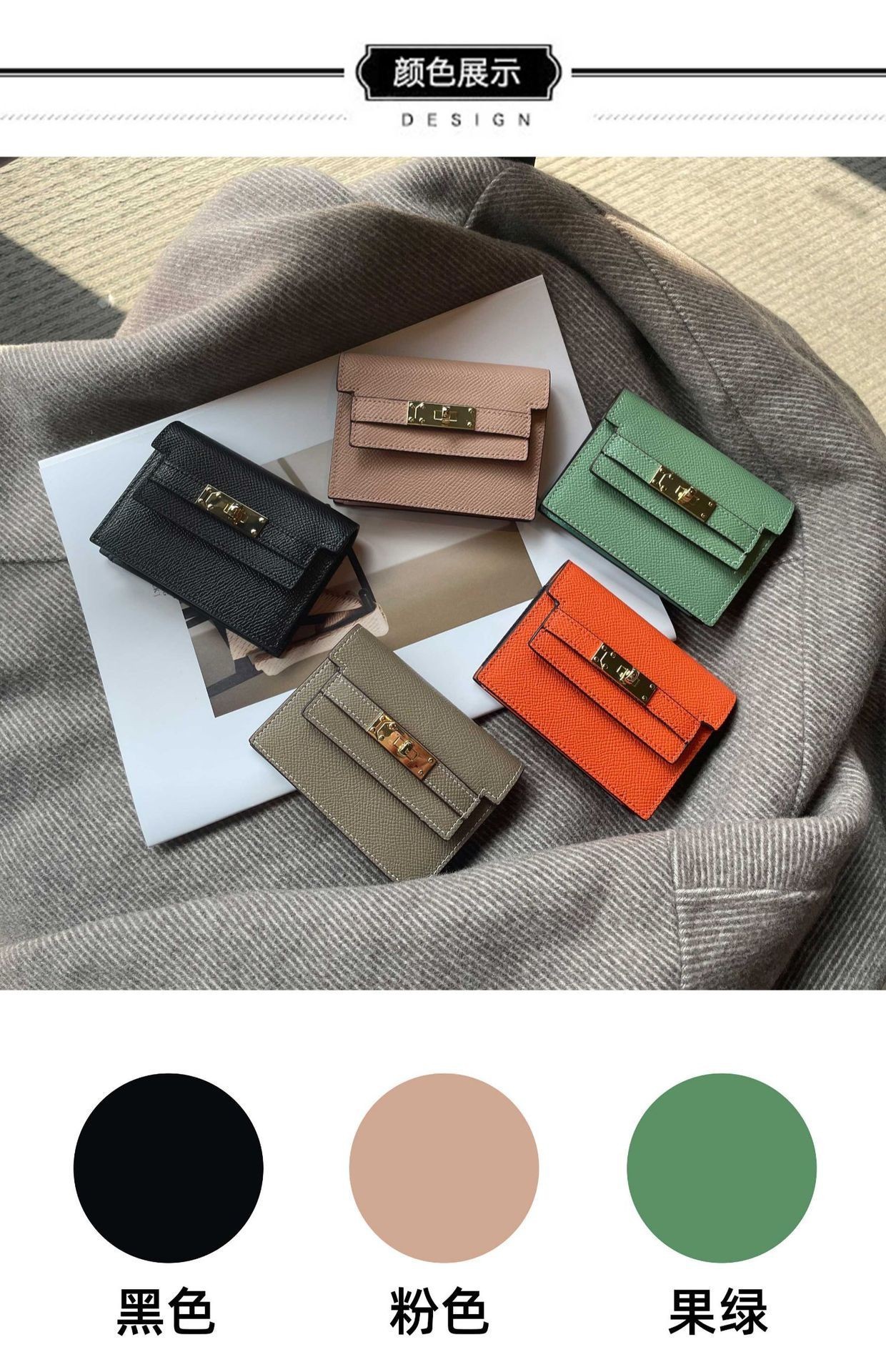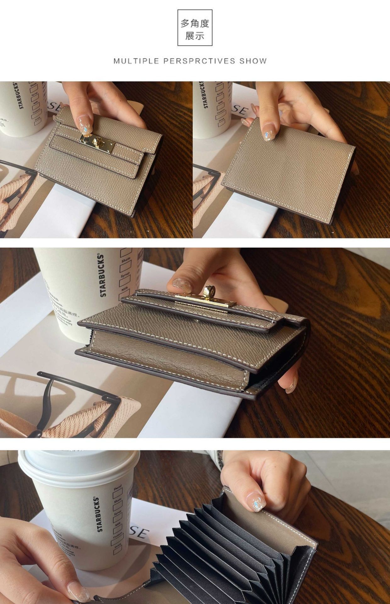 톱 레이어 Cowhide 프렌치 잠금 솔리드 컬러 하이 레벨 변경 카드 가방 안티 데기 멀티 카드 오르간 여성용 지갑스토어 가기