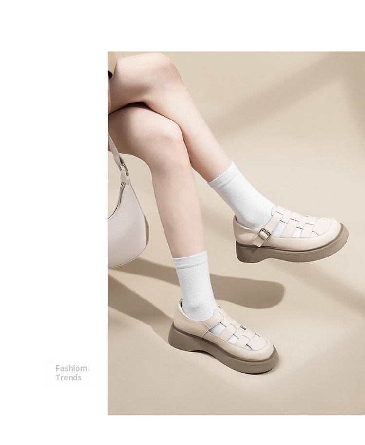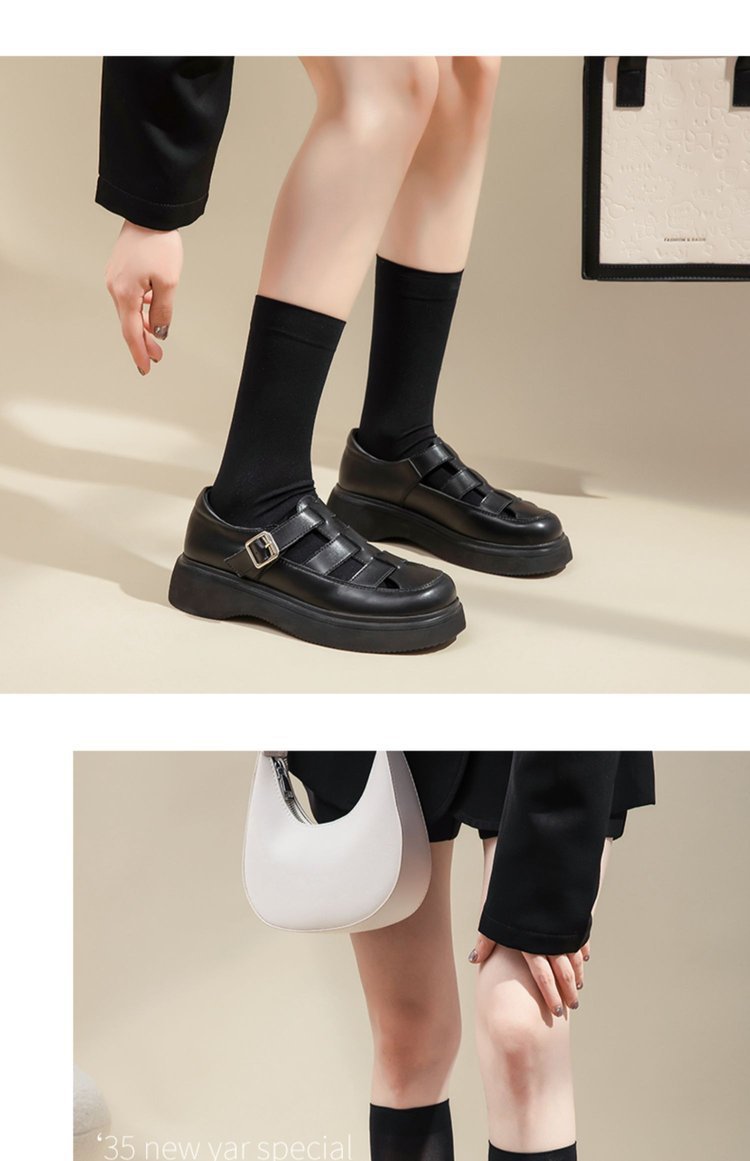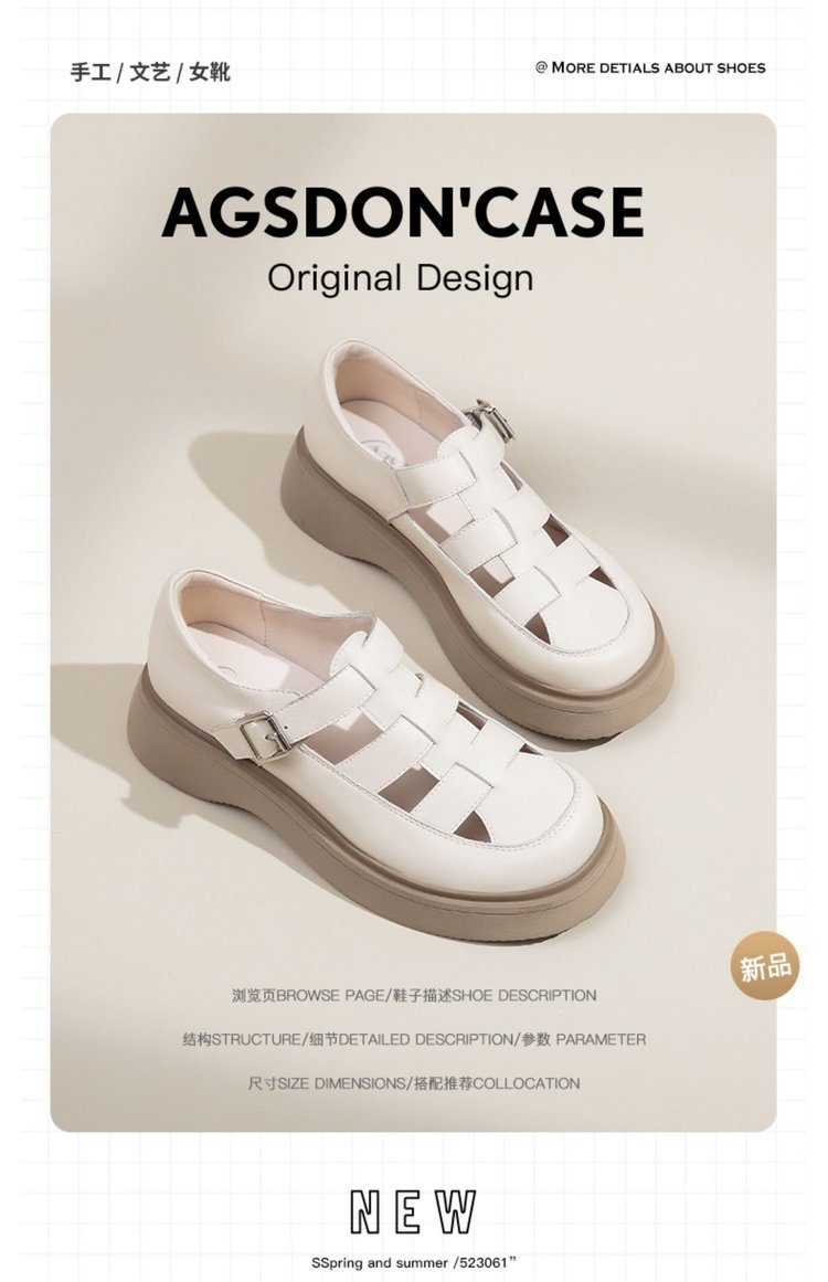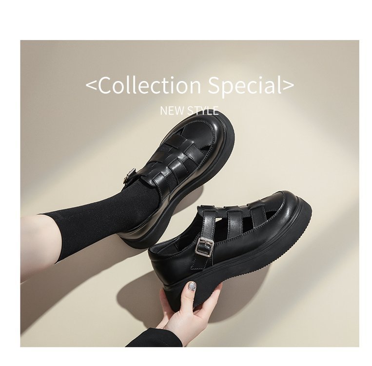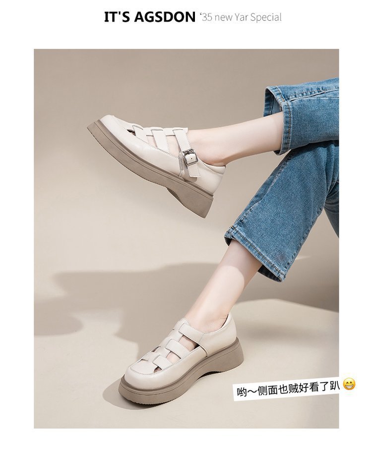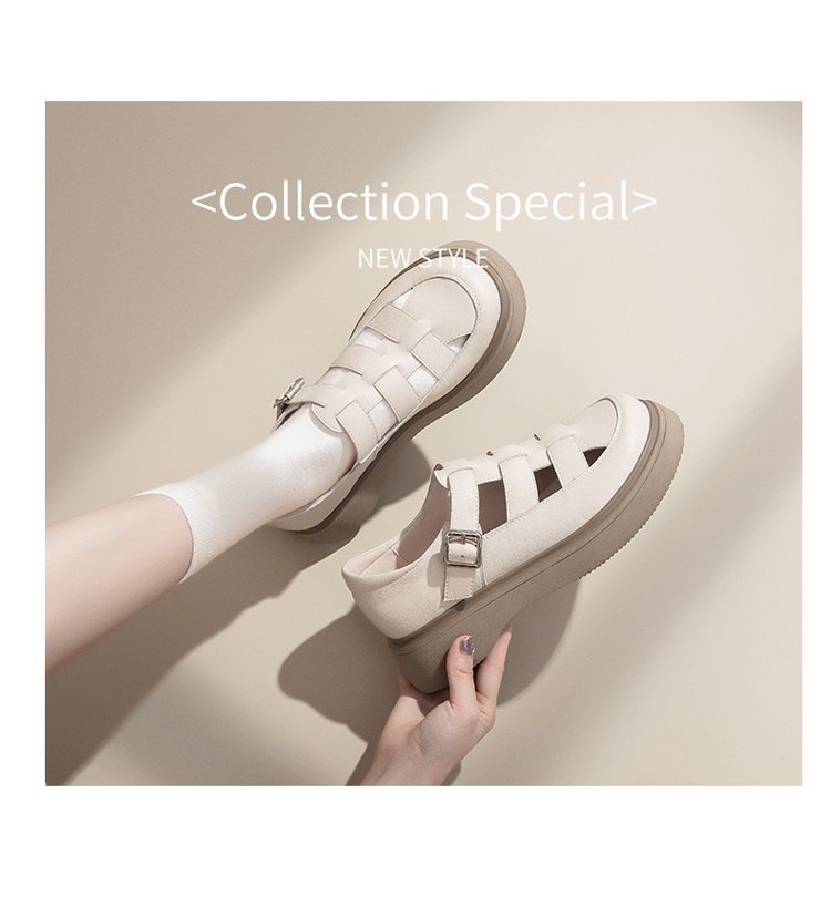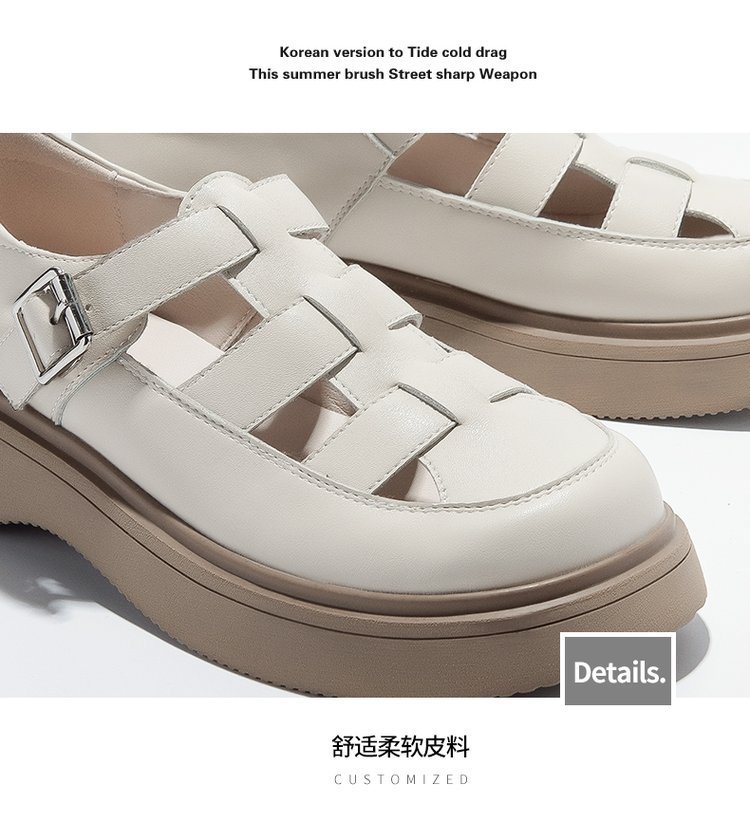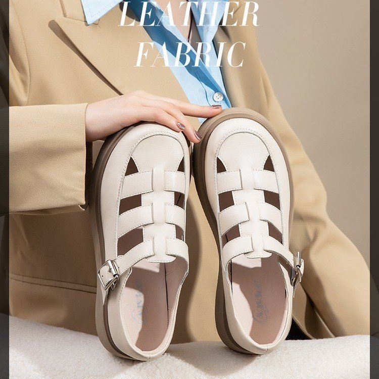 로마 샌들 여성 여름 2024 새로운 두꺼운 하단 상단 싱글 레이어 신발 스커트 Lefu 외부 착용을위한 작은 가죽 신발스토어 가기