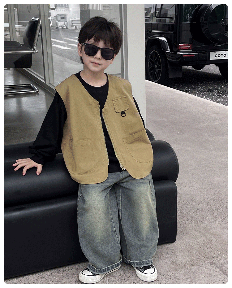 [7.4 제로 가을 새로운 좋아하는 수집 및 구매!] ~ 씻은 면화 공구 라벨링 조끼