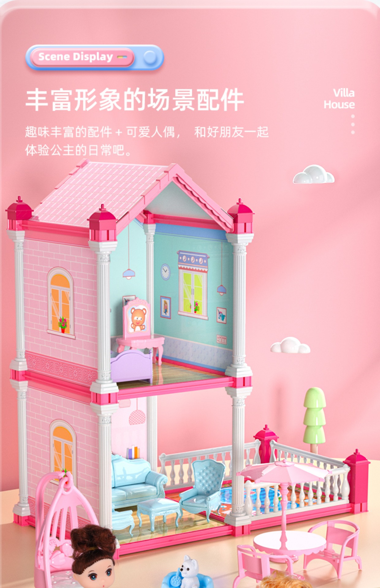 • [플러스] 빌라 4 층 10 객실 4 인형 (조명) 럭셔리카 로고 패키지