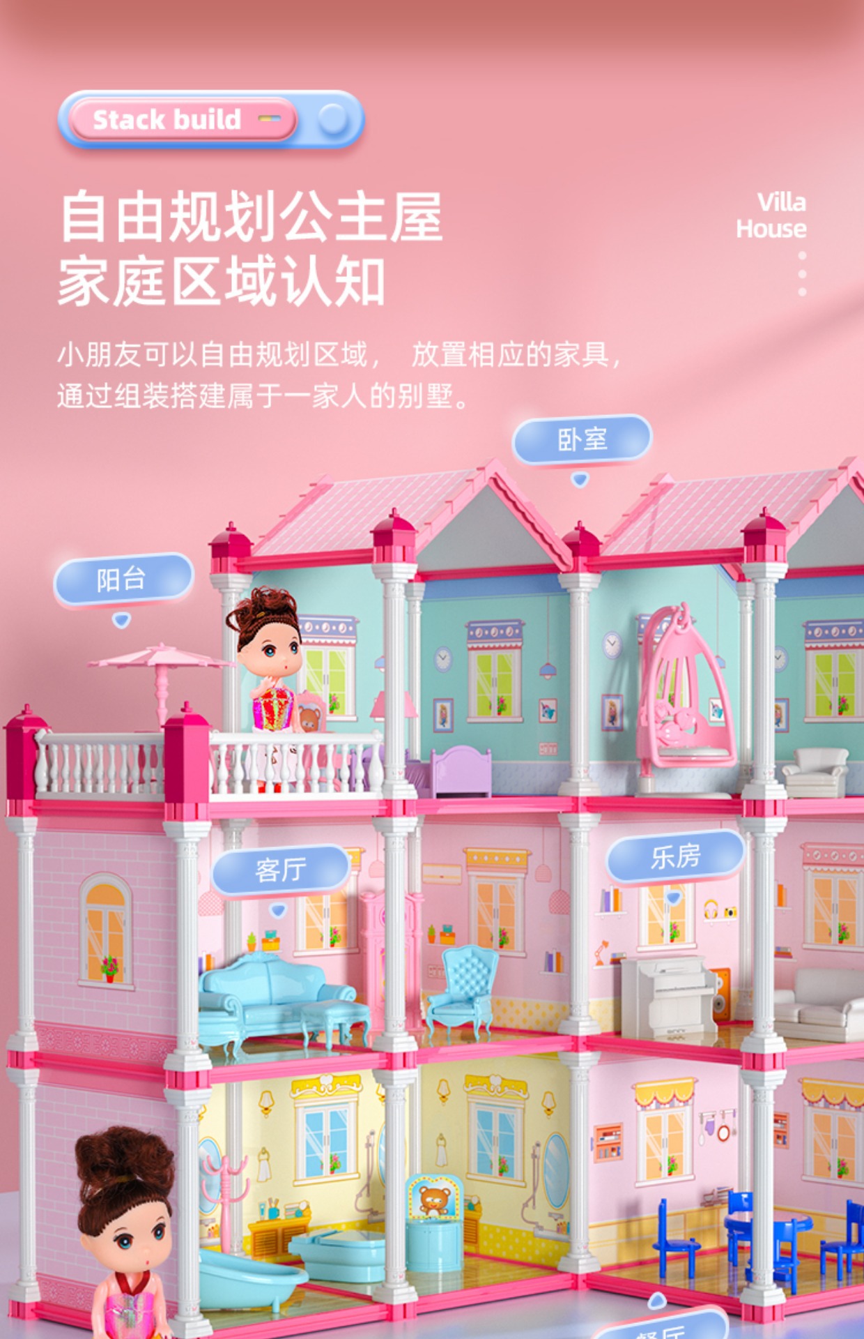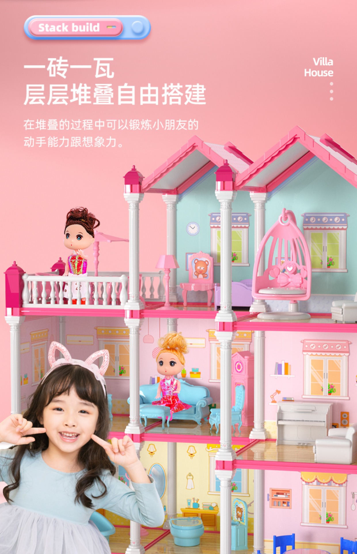 어린이 소녀 시리즈 빌딩 블록 조립 장난감 퍼즐 5 공주 성 2 여자 3 ~ 6 세 빌라 스테레오 퍼즐