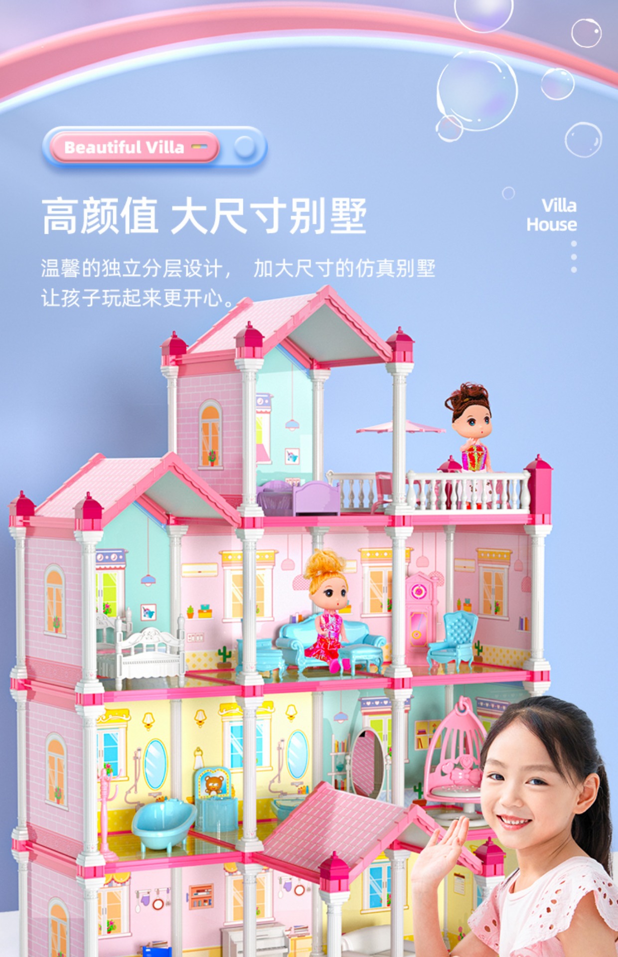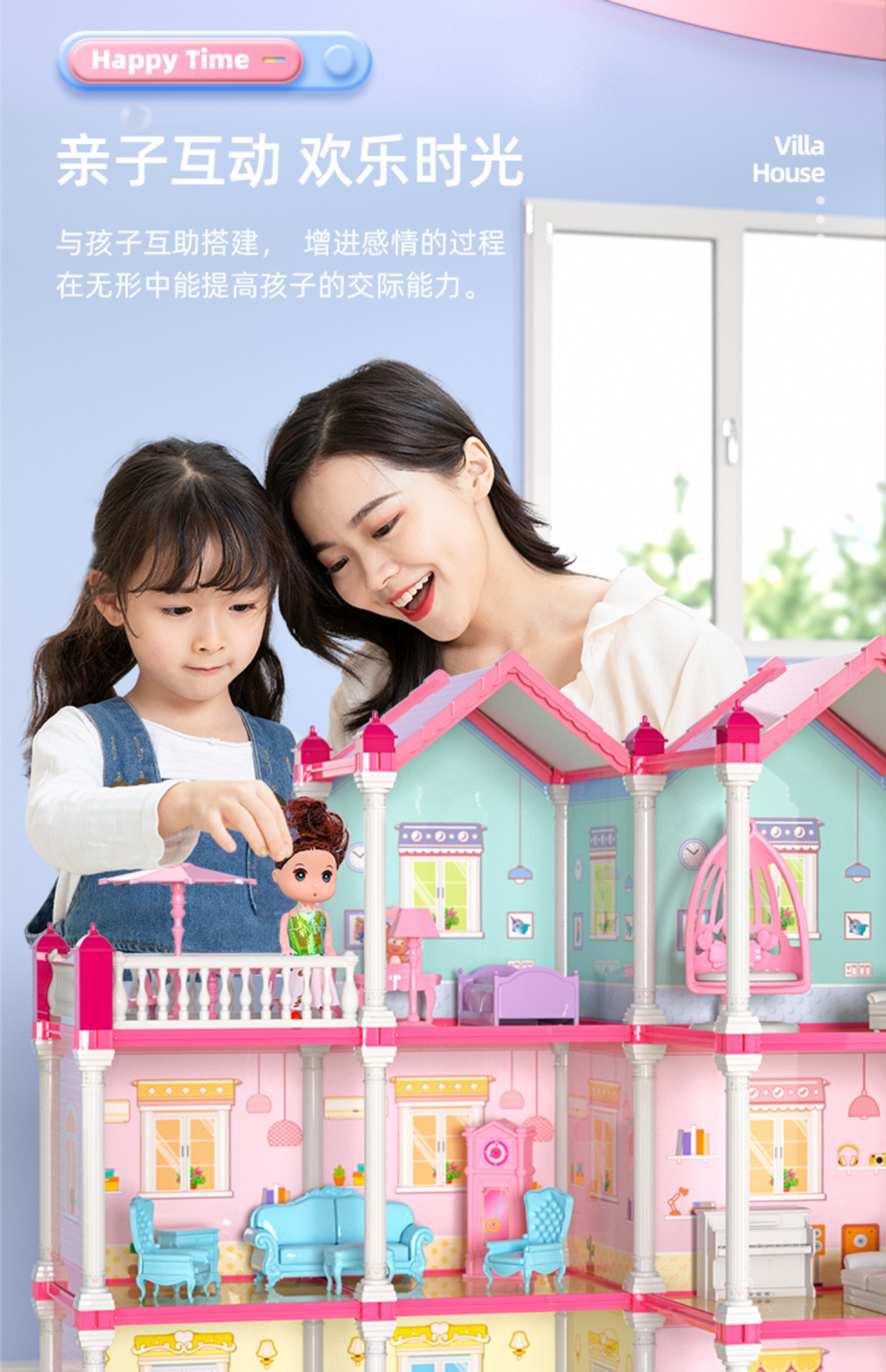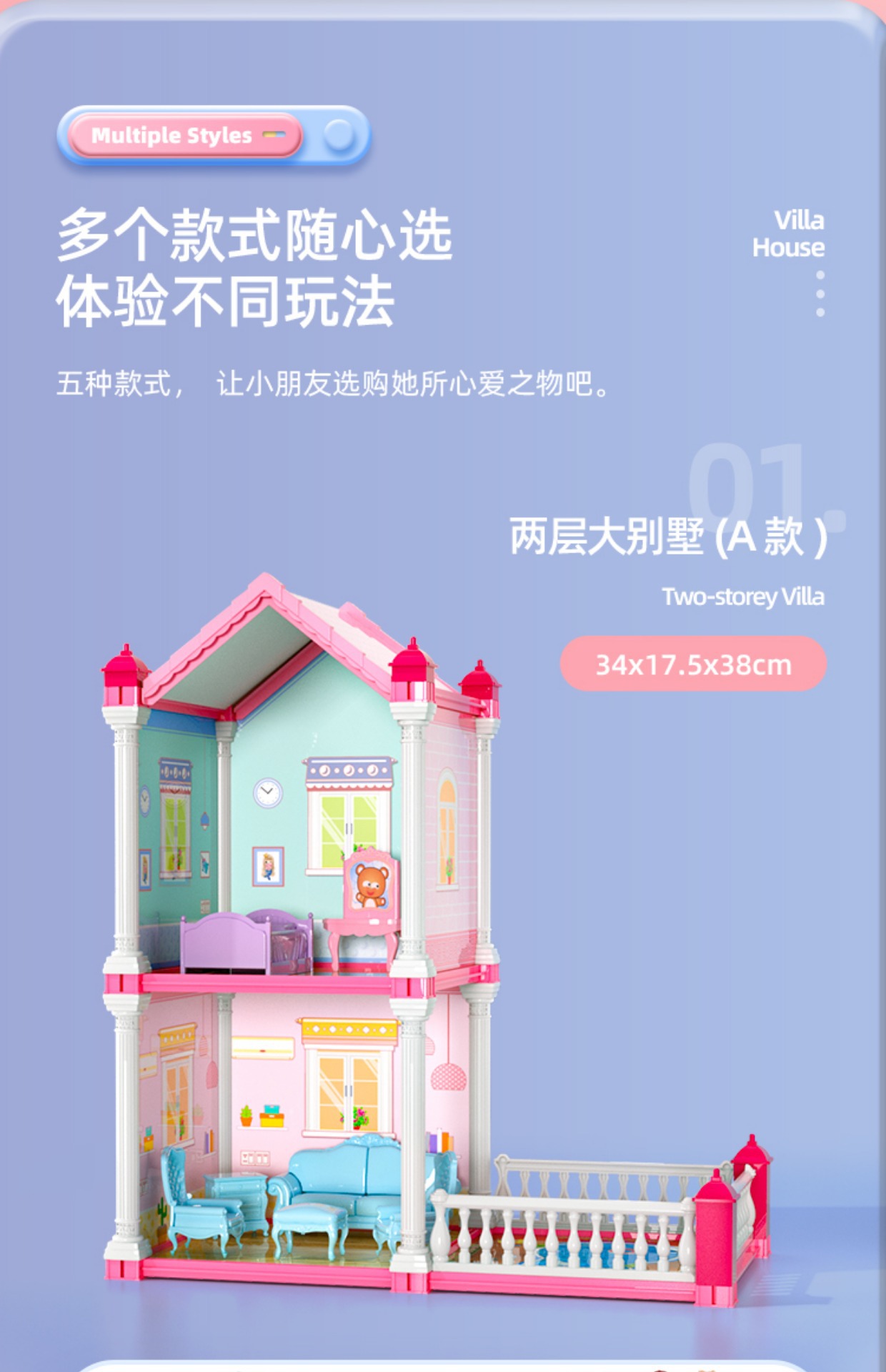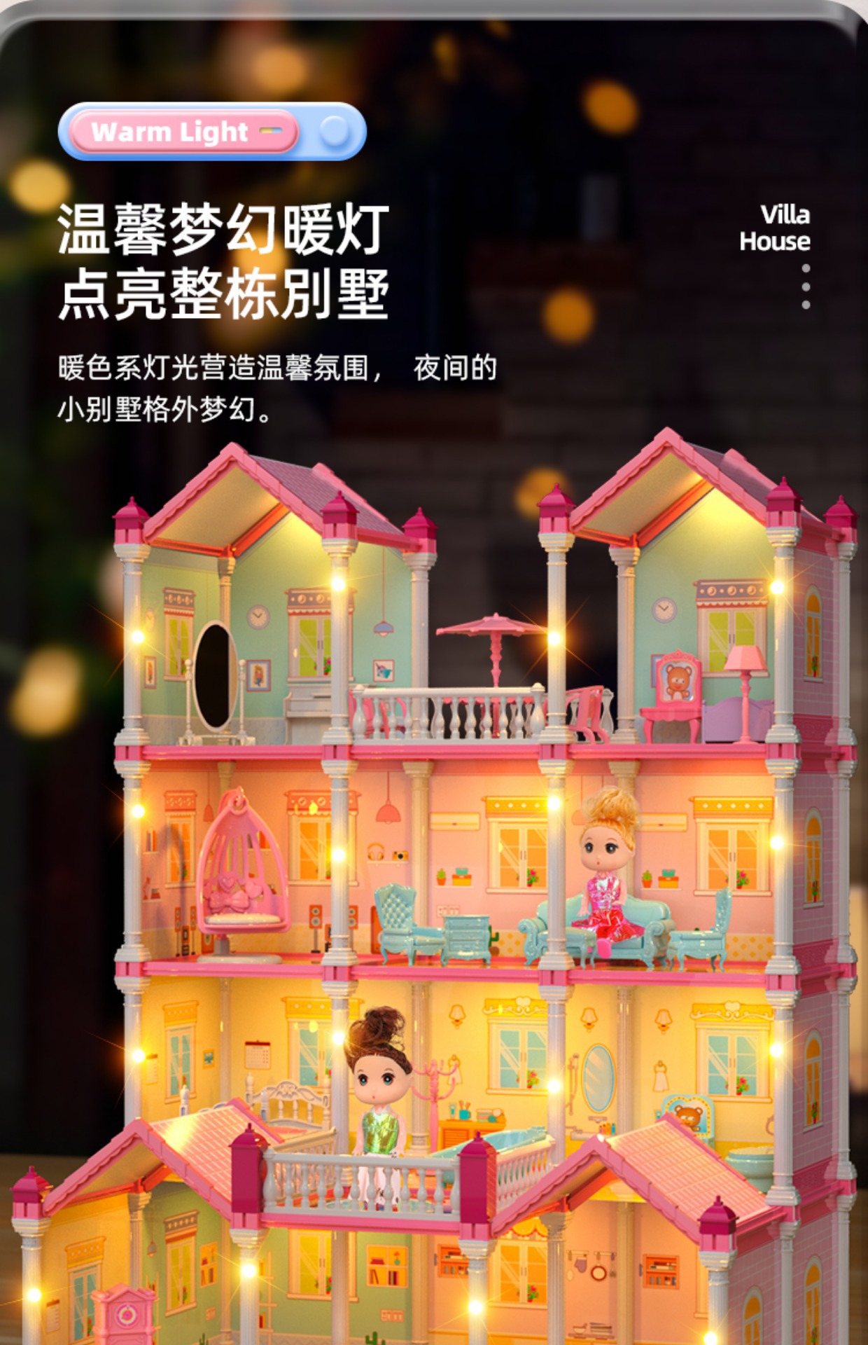 • [미니 할인 모델]--빌라 2층, 집 2개 + 인형 2개 [조명 버전]