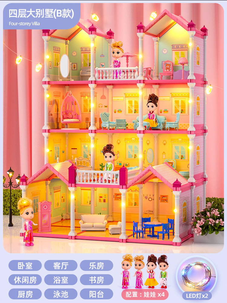 • [럭셔리] 빌라 4 층 13 룸 4 인형 (라이트) 럭셔리카 로고 패키지