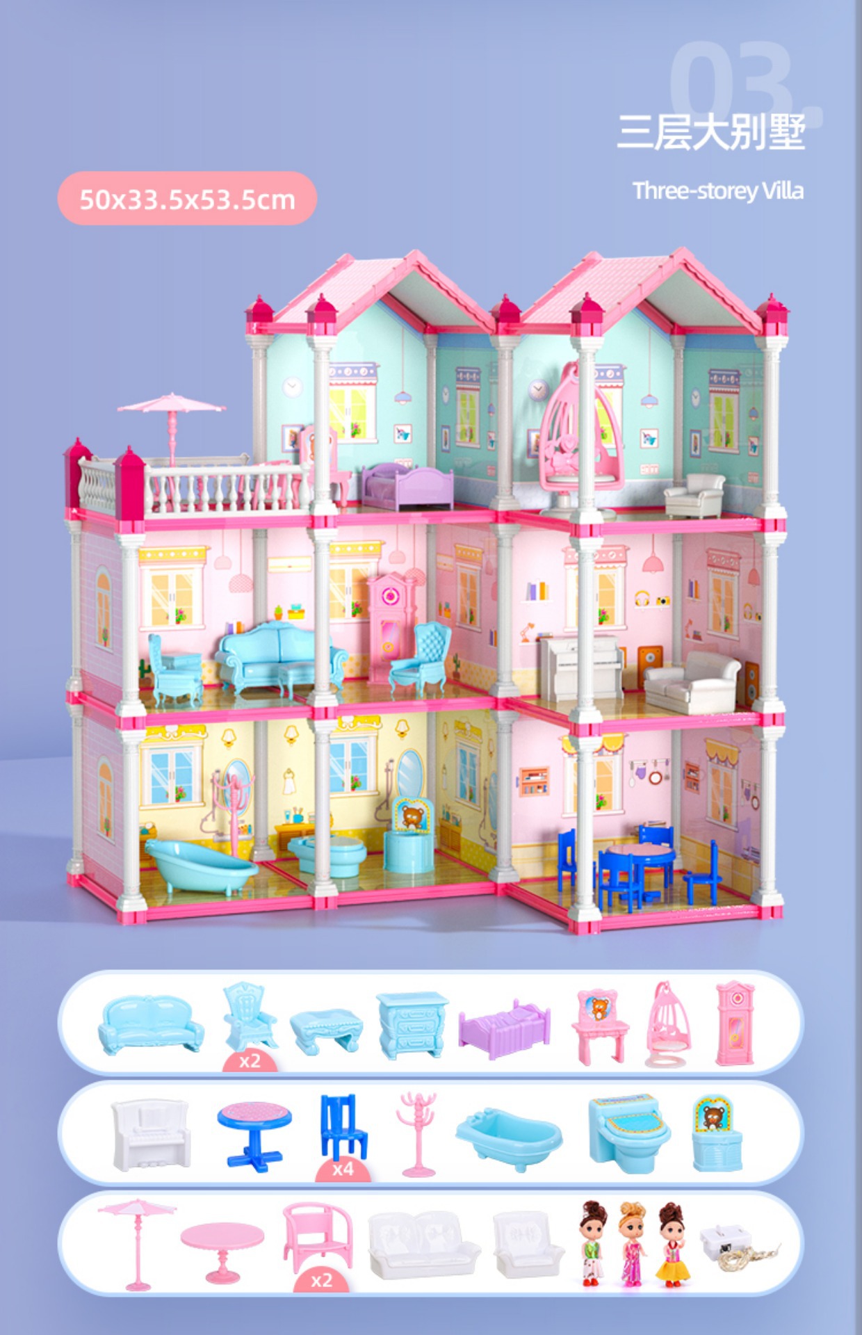 • [대형] 빌라 3 층 8 실 2 인형 (라이트) 럭셔리카 로고 패키지