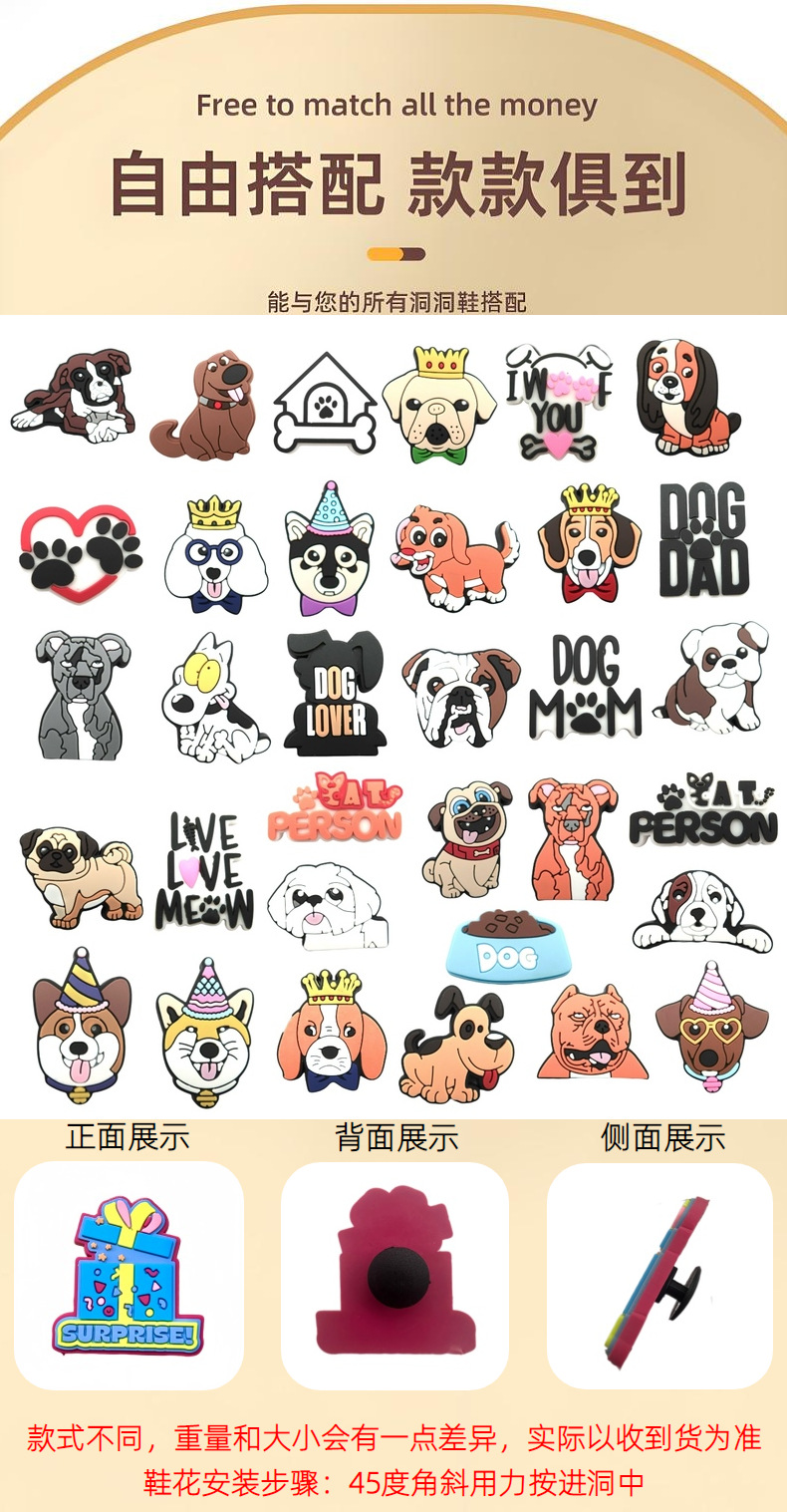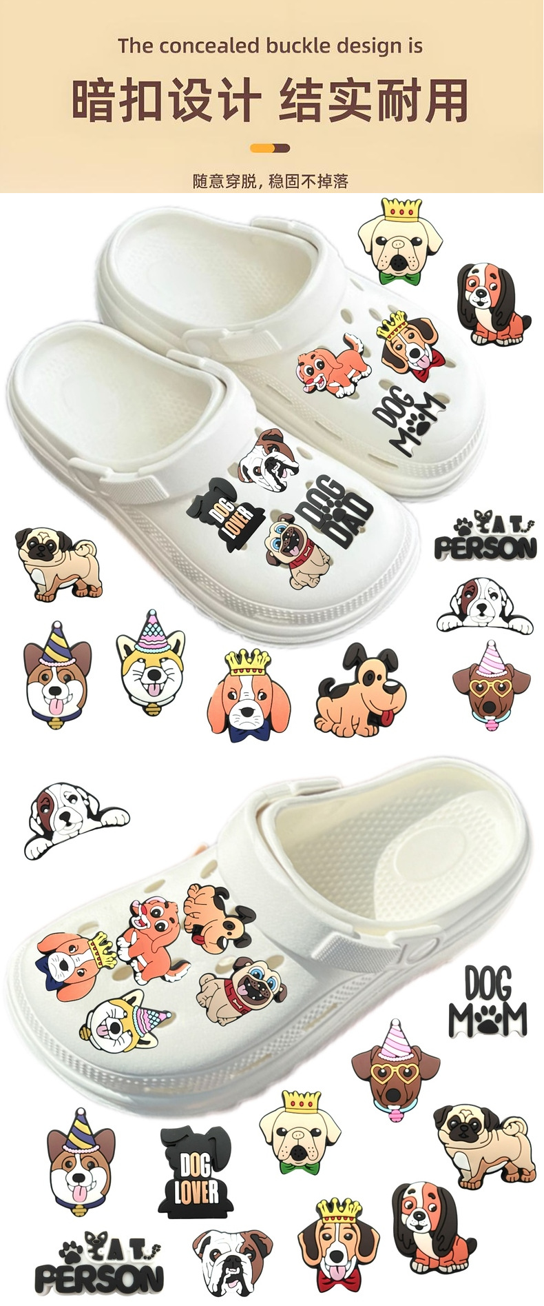 만화 애완견 강아지 신발 장식, 구멍 뚫린 신발 DIY 액세서리, 귀여운 동물 PVC 플라스틱 장식 버클, 재고 있음