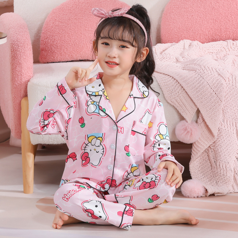 소녀 잠옷 봄과 가을 긴 소매 얇은 만화 서양 스타일 작은 소녀 아기 중년 어린이 가정 옷 세트