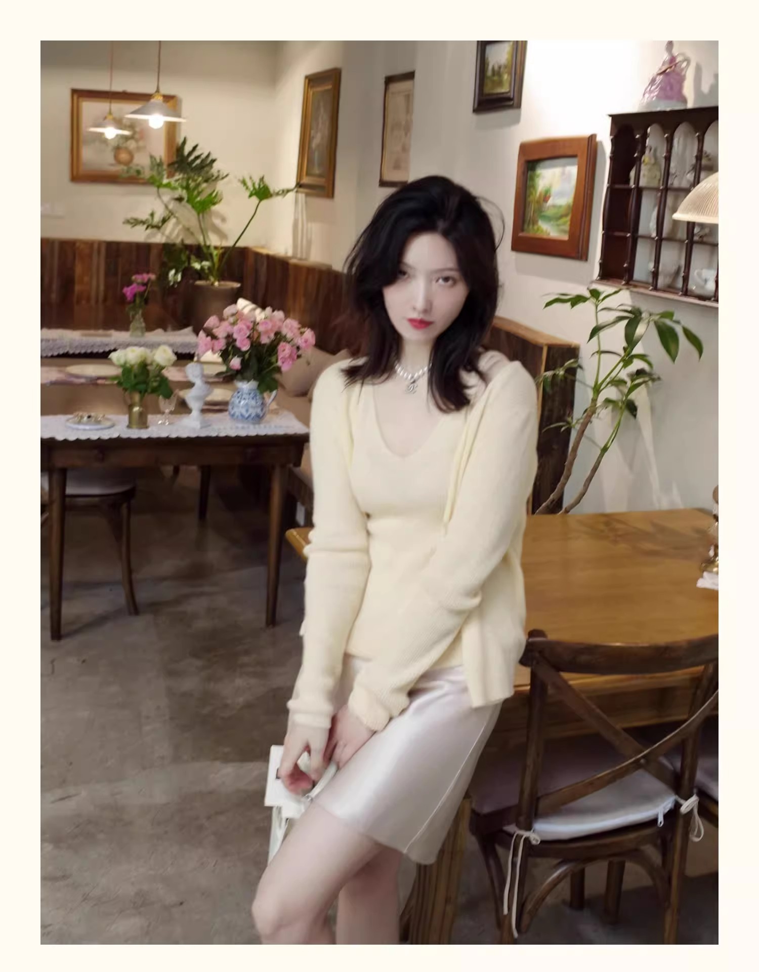 디자인 센스 틈새 A 자형 Dape 센스 새틴 높은 허리 신 새틴 스커트 여성의 여름 하이 엔드 센스 세련된 아름다운 오버 스커트