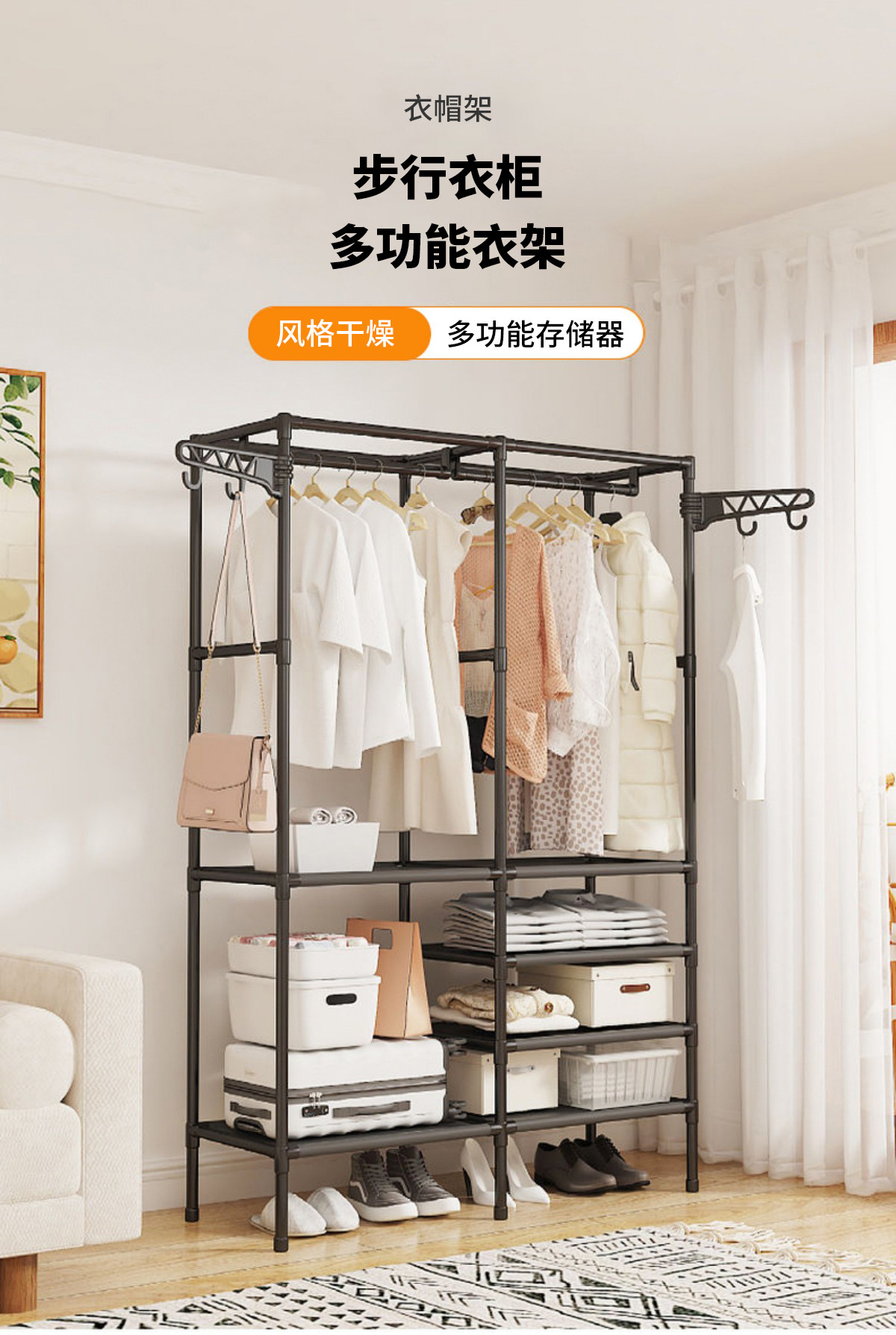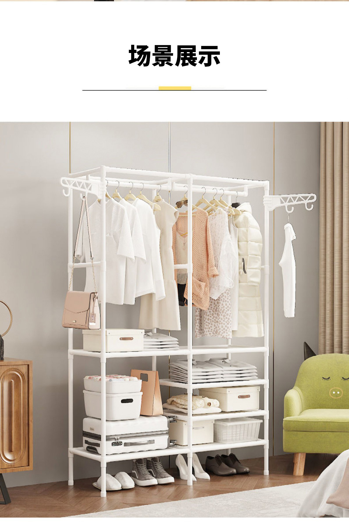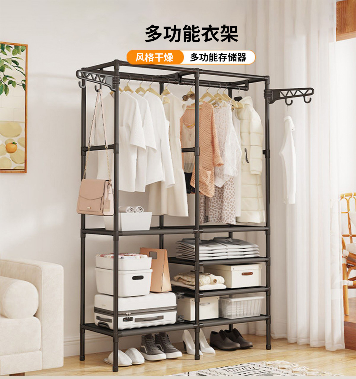 국경을 넘는 인기 간편 옷걸이 다기능 이중 행 옷걸이 걸이형 옷걸이 건조대 침실 가정용 옷장