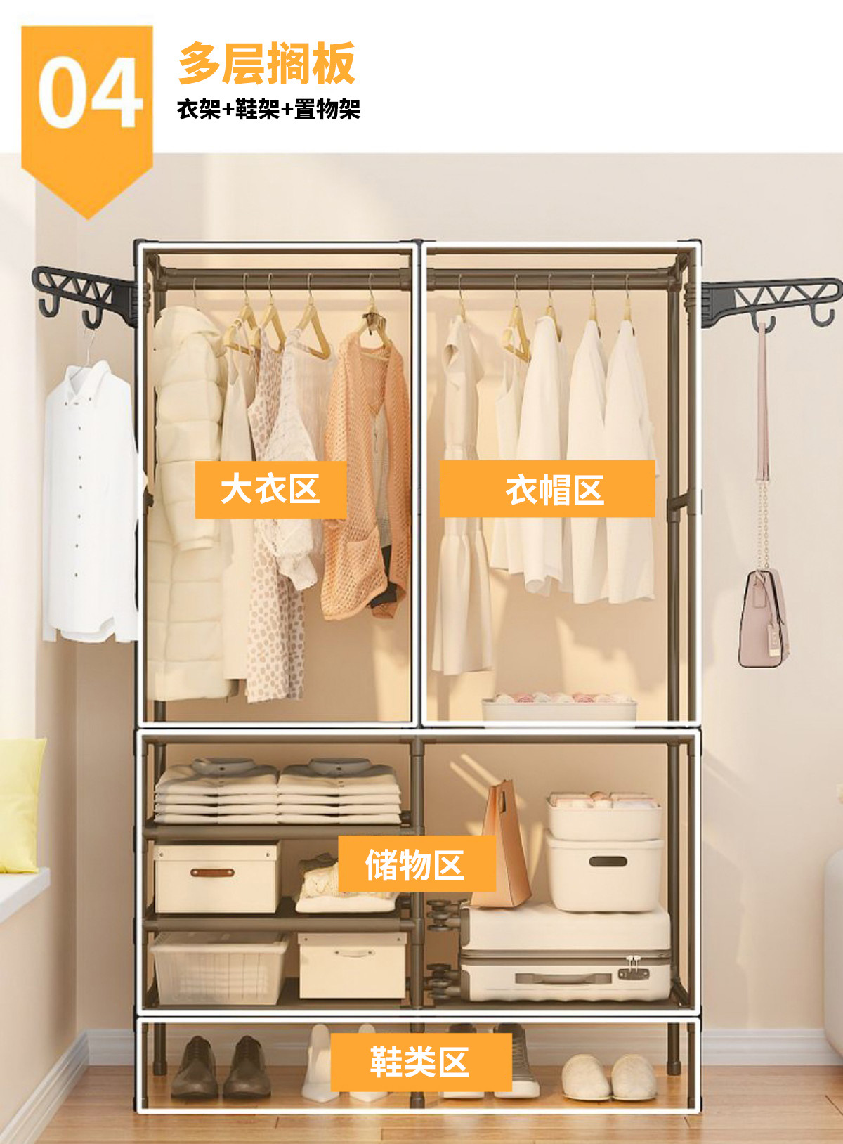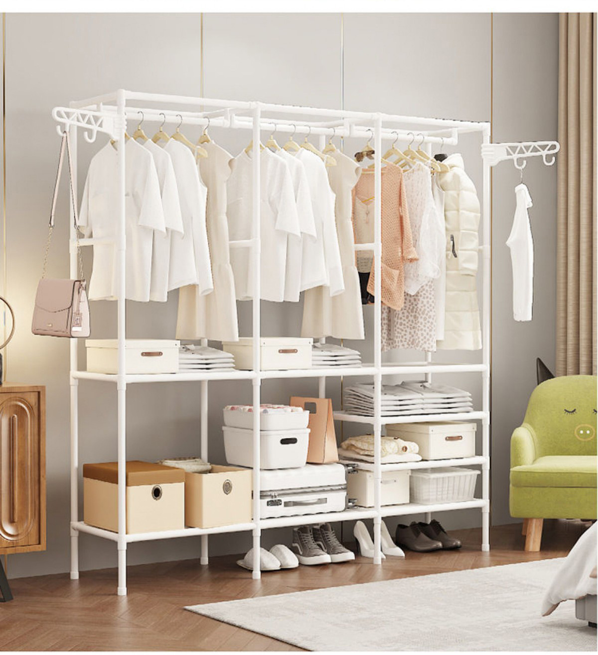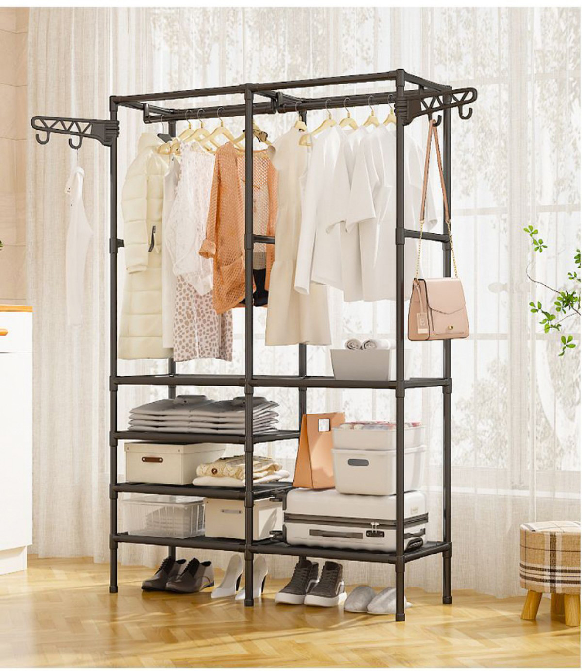 국경을 넘는 인기 간편 옷걸이 다기능 이중 행 옷걸이 걸이형 옷걸이 건조대 침실 가정용 옷장