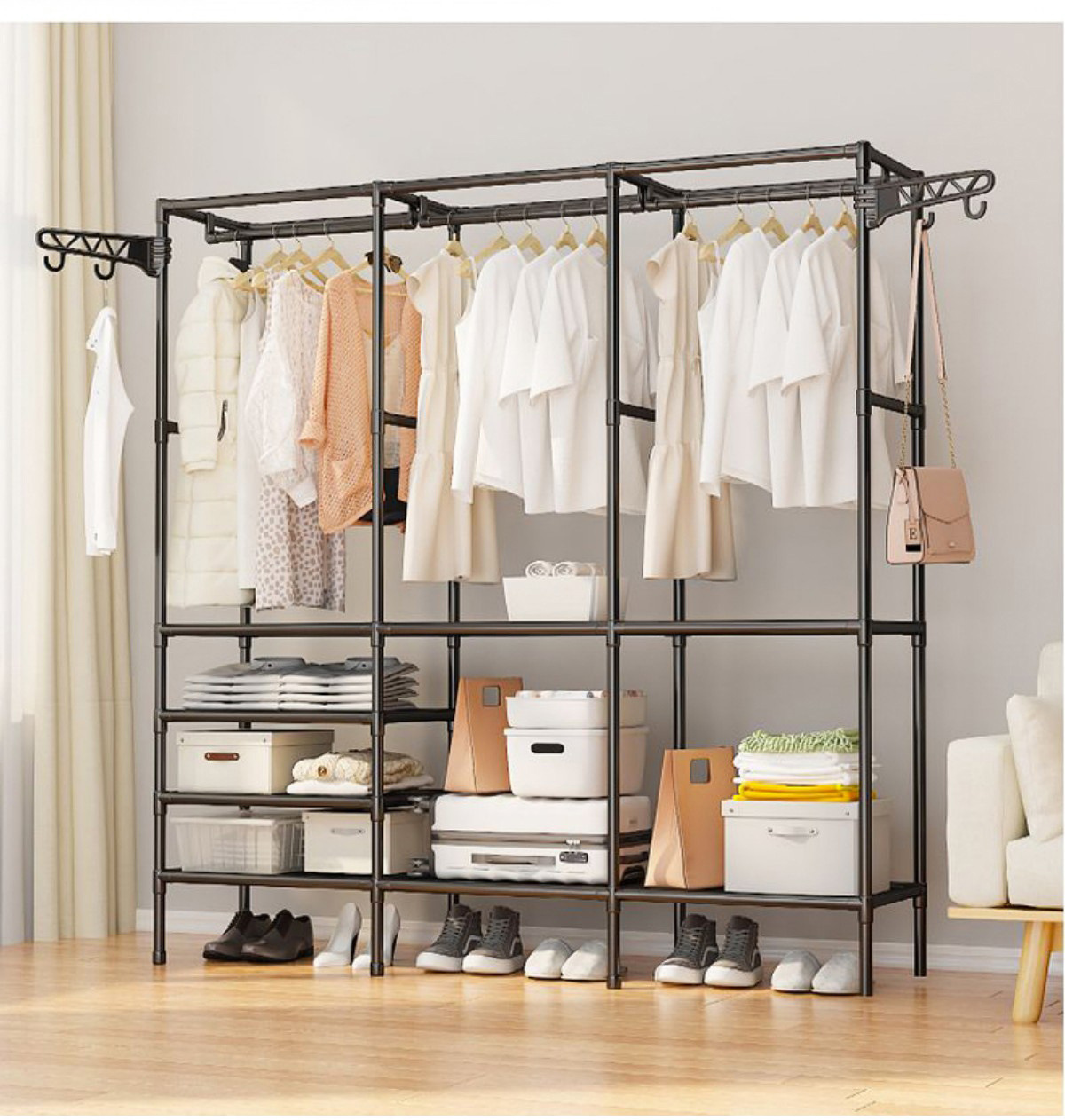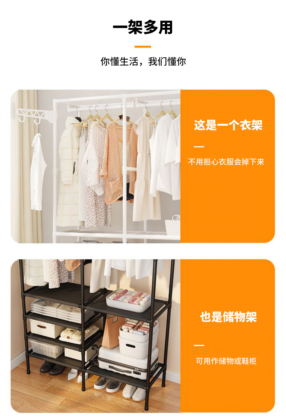국경을 넘는 인기 간편 옷걸이 다기능 이중 행 옷걸이 걸이형 옷걸이 건조대 침실 가정용 옷장스토어 가기
