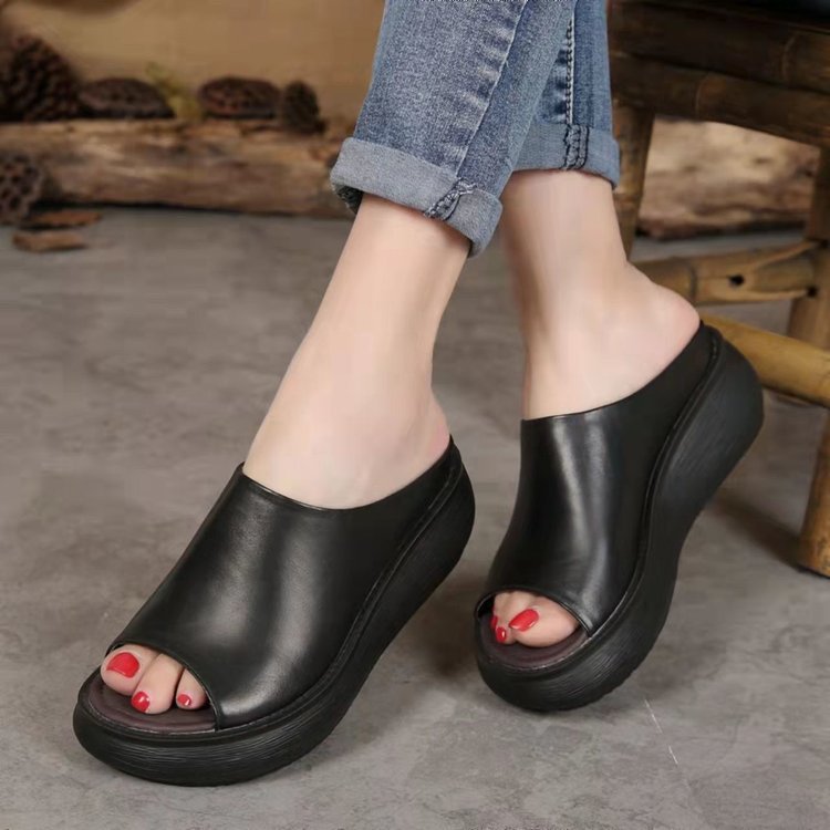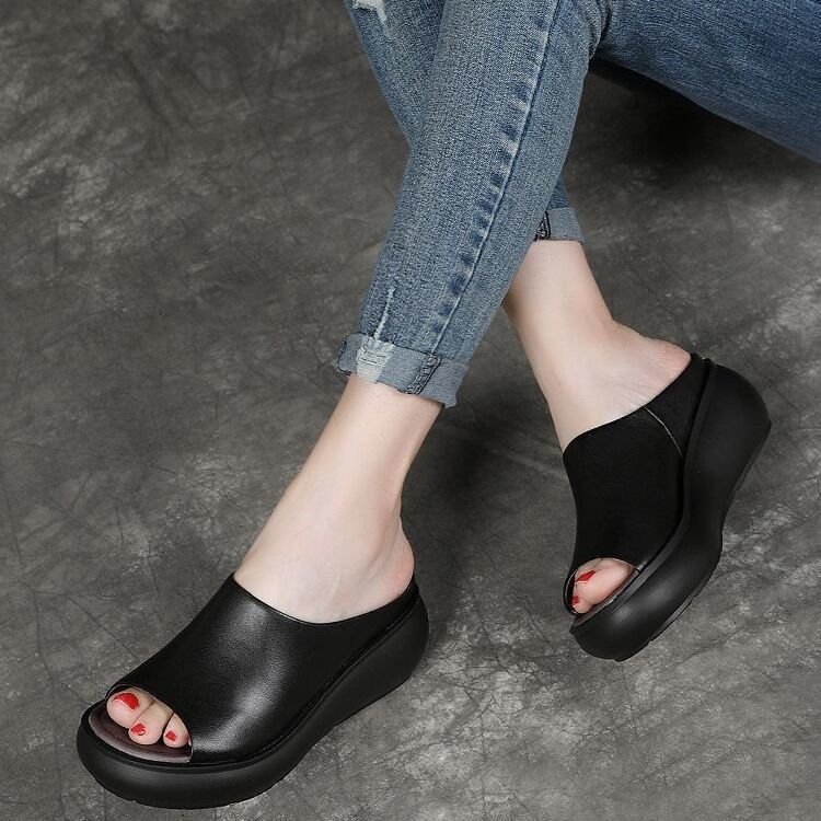 여성 신발 두꺼운 단독 쐐기 슬리퍼 여성 외부 착용 2024 새로운 인터넷 축하 패션 강화 쿨 슈즈를 플러스 사이즈 국경 폭발
