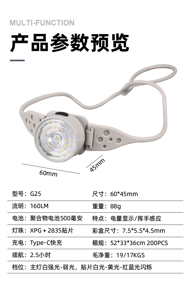 야외 미니 높은 전원 강한 빛 장거리 내구성 검색 지능형 유도 충전식 낚시 헤드라이트스토어 가기